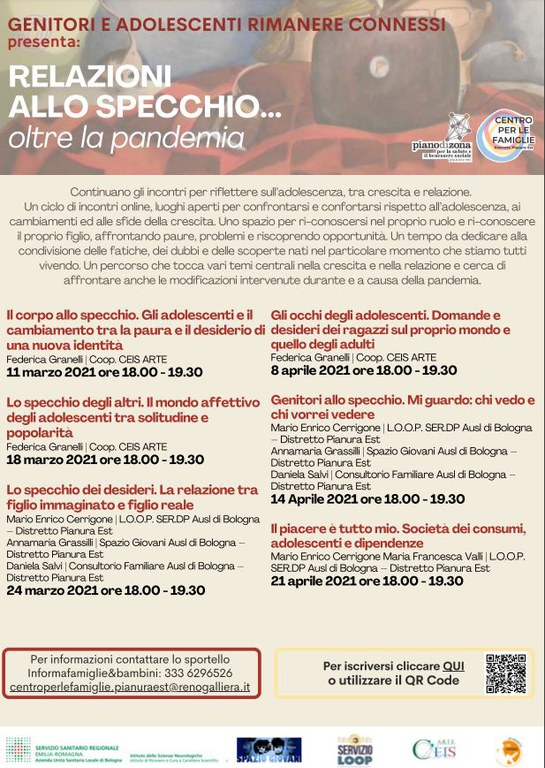 L'11 marzo prendono il via gli incontri, promossi dal Centro per le Famiglie Pianura Est per riflettere sull'adolescenza, tra crescita e relazione. L'obiettivo è quello di costruire un luogo per confrontarsi e confortarsi rispetto all'adolescenza, ai cambiamenti ed alle sfide della crescita; uno spazio per ri-conoscersi nel proprio ruolo e ri-conoscere il proprio figlio, affrontando paure, problemi e riscoprendo opportunità.
