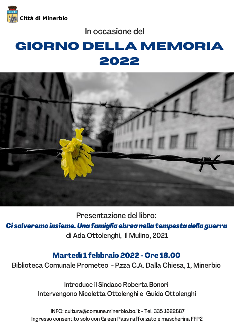In occasione del Giorno della Memoria 2022, martedì 1 febbraio alle ore 18.00, verrà presentato presso la Biblioteca comunale Prometeo il libro "Ci salveremo insieme. Una famiglia ebrea nella tempesta della guerra" di Ada Ottolenghi, il Mulino, 2021.