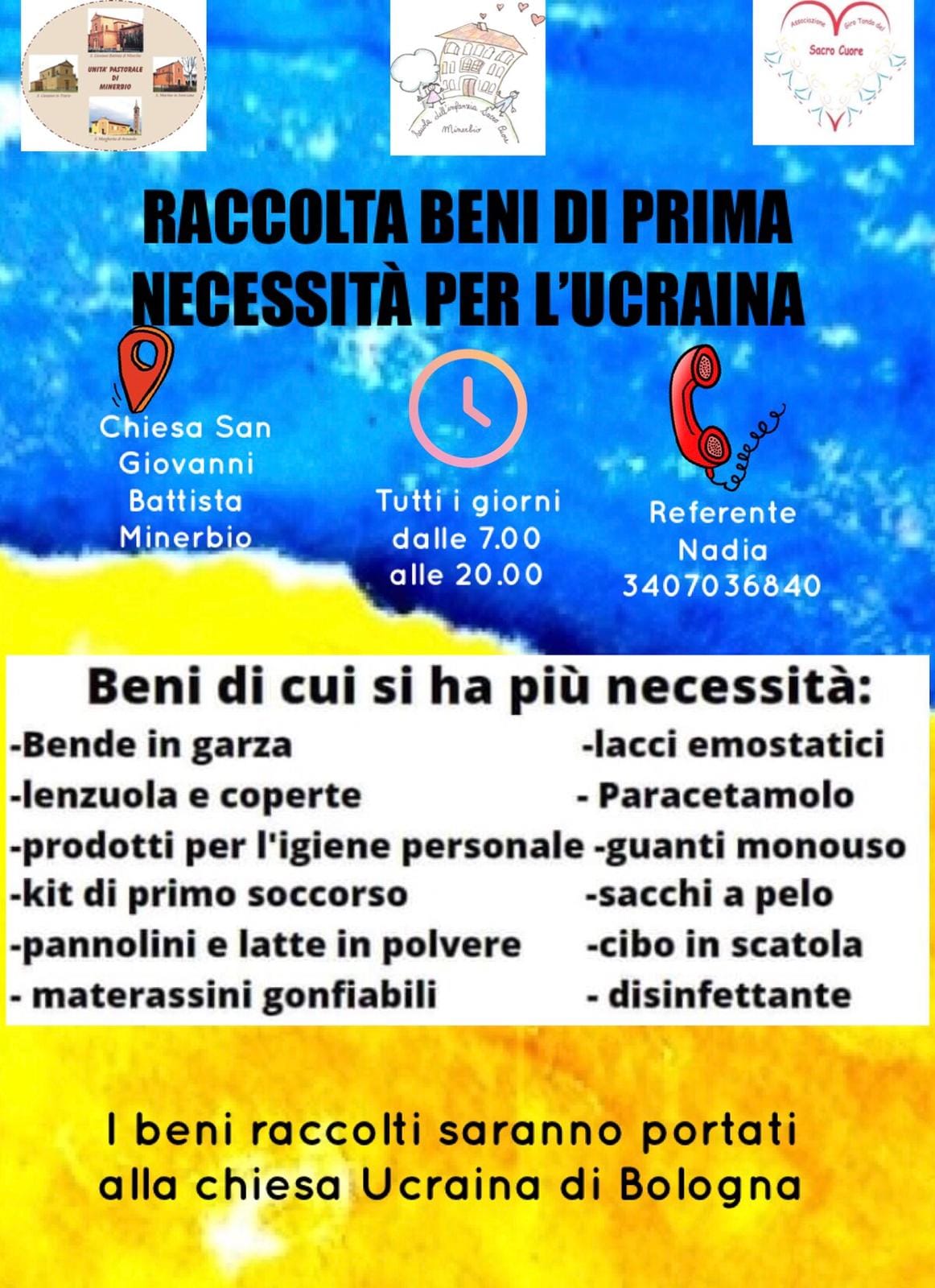 Il Comune di Minerbio aderisce alla raccolta di beni di prima necessità destinati alla popolazione ucraina attiva presso la Parrocchia di San Giovanni Battista, via Garibaldi 7 b