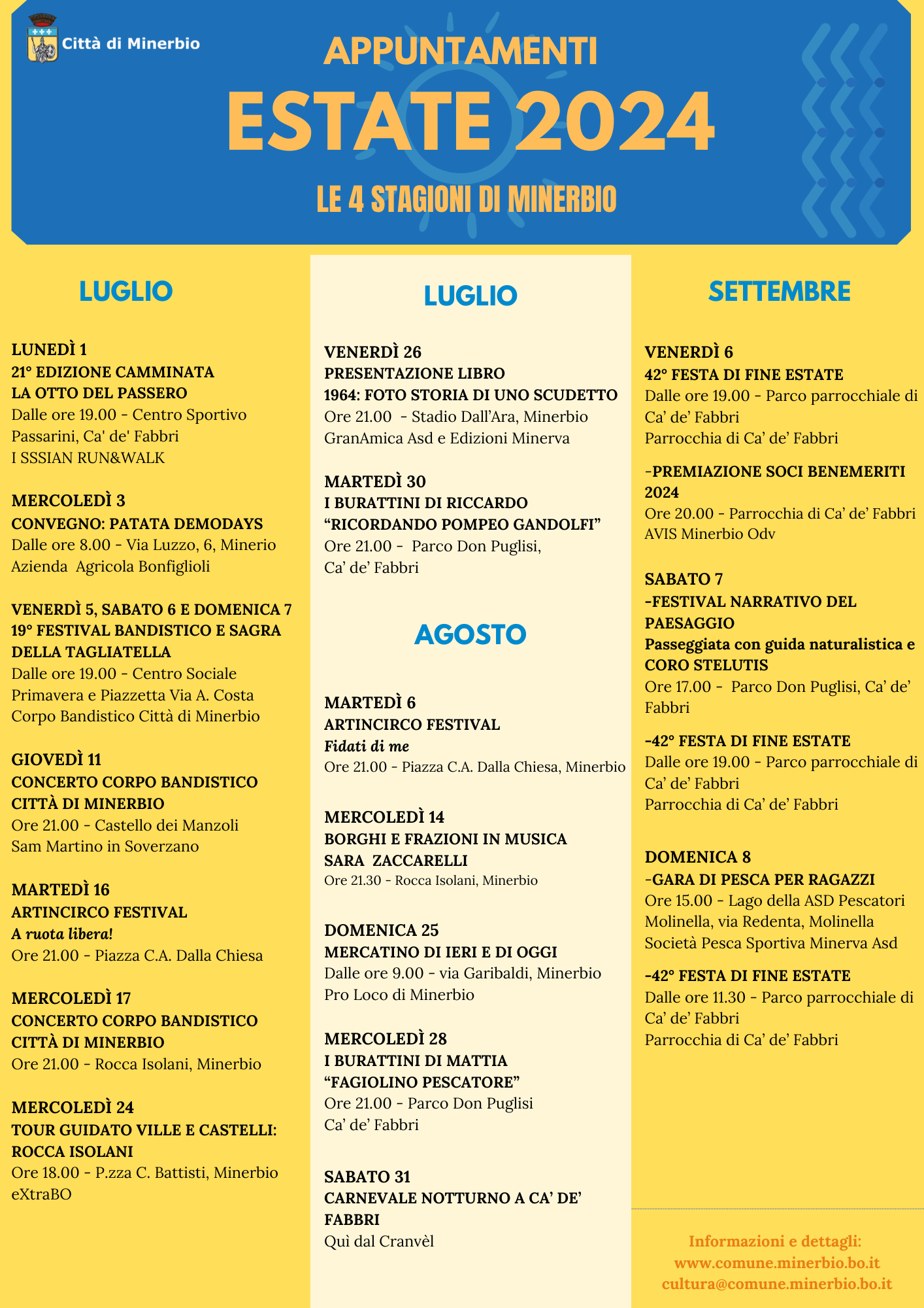 Un'estate a Minerbio ricca di attività, spettacoli, incontri ed eventi fino a settembre.