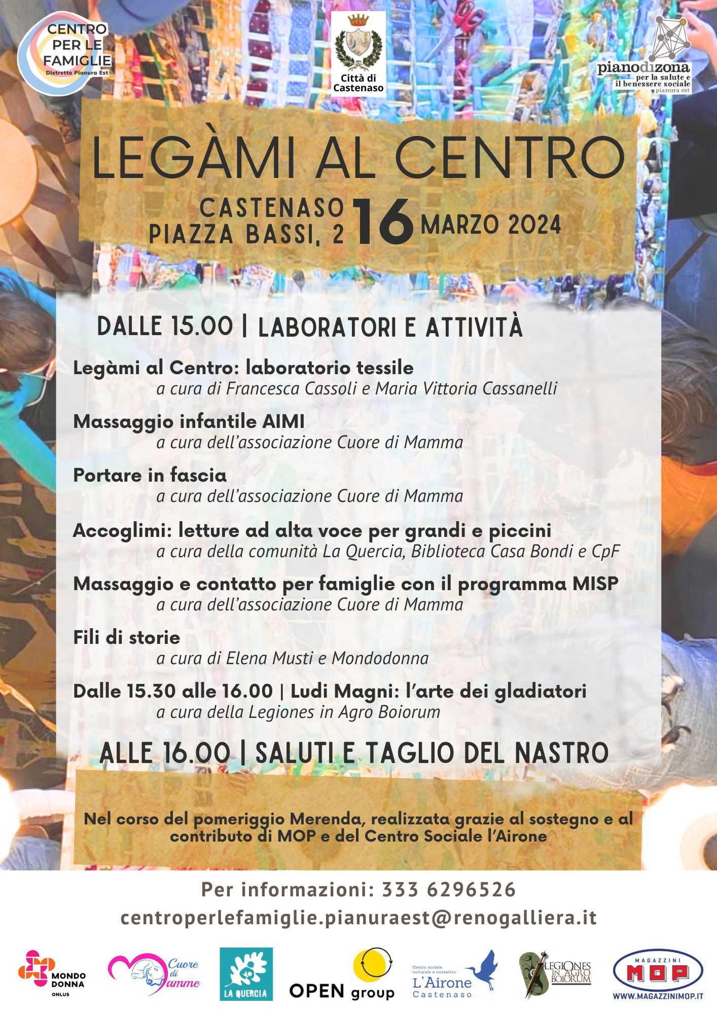 Le giornate saranno l'occasione per conoscerci, ri-conoscerci e tessere nuovi legami e fili di relazione, e saranno accompagnate da attività, laboratori rivolti a tutte le età.