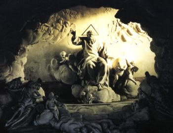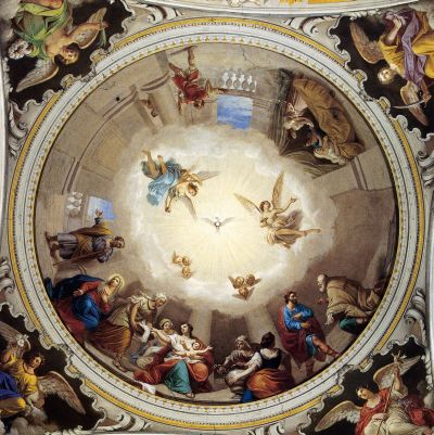 Da sottolineare è il gruppo scultoreo con la "Gloria" realizzata dallo scultore Giuseppe Mazza nel 1700 e proveniente dalla soppressa chiesa di San Gabriele (delle carmelitane scalze) in via santo Stefano a Bologna. Nell’abside realizzata dal Dotti il gruppo plastico inizialmente mancava e mancava anche una consistente fonte di luce. Essa infatti proverrà dalle finestre aperte nei muri laterali della camera che nel 1813 l’architetto Angelo Venturoli, aggiunse all’abside originaria (proprio per ospitare la scultura suddetta). Attualmente la penombra del presbiterio, procurata da pesanti tende di colore marrone alle finestre, contribuisce a focalizzare l’attenzione del visitatore sulla luminosissima gloria collocata sull’ancona dell’ Altar maggiore all’interno della “camera aggiunta”, determinandocosì una modalità di approccio a Dio diversa da quella pensata dal Dotti e suggerendo che con la mediazione necessaria della Chiesa terrena uniformata a Cristo la tensione dell’uomo deve essere rivolta primariamente a Dio .