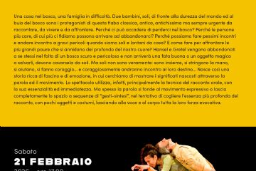 Sabato 21 Febbraio 2026 alle ore 17.00 si terrà a Palazzo Minerva lo spettacolo "Hansel e Gretel", dell'Associazione il Baule Volante.
