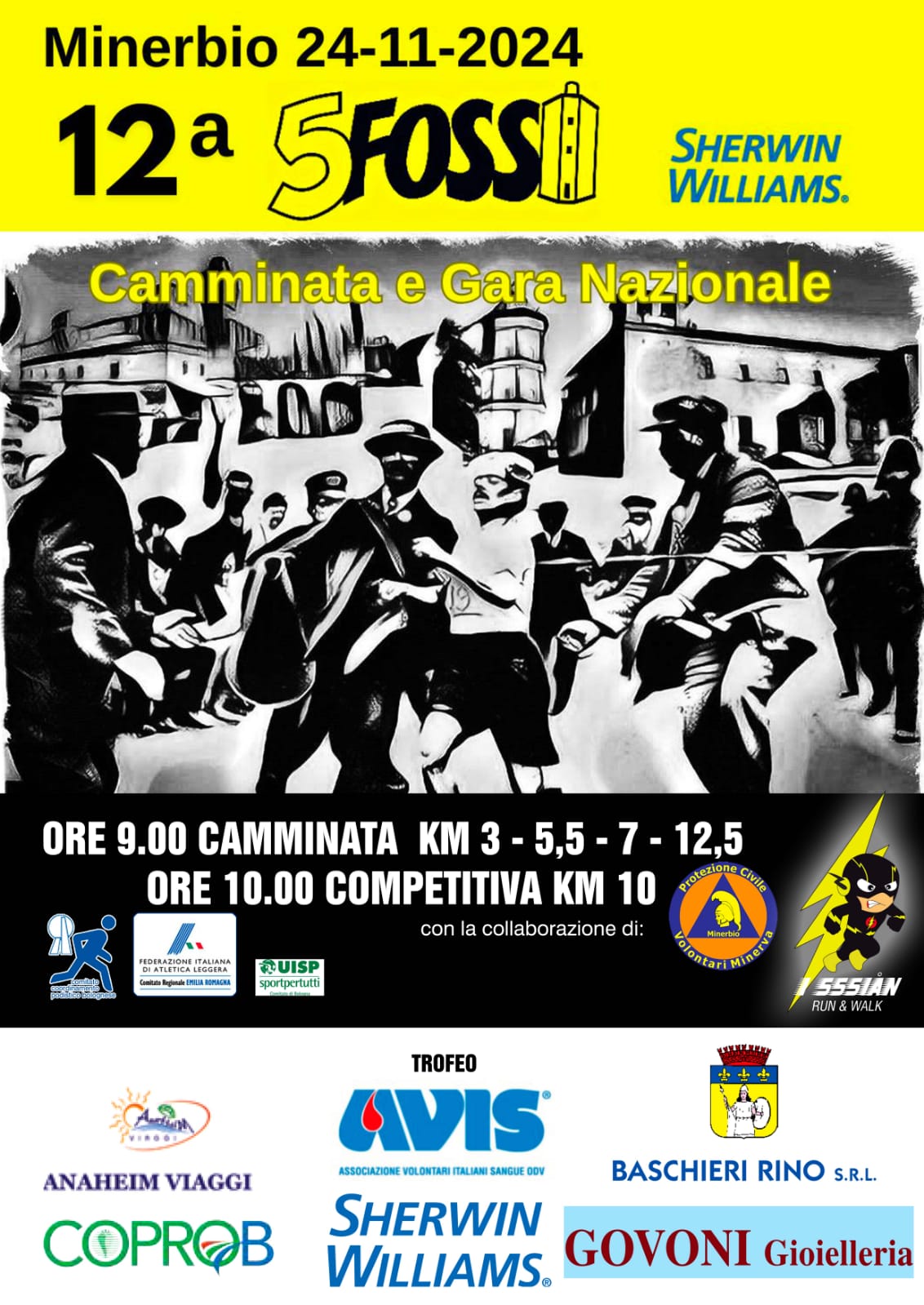 Domenica 24 Novembre 2024 tornano la 12ᵃ edizione della "Cinque fossi-RUN&WALK" e Cinque fossi Sherwin Williams-Gara nazionale ed il Mercato della Toscana.