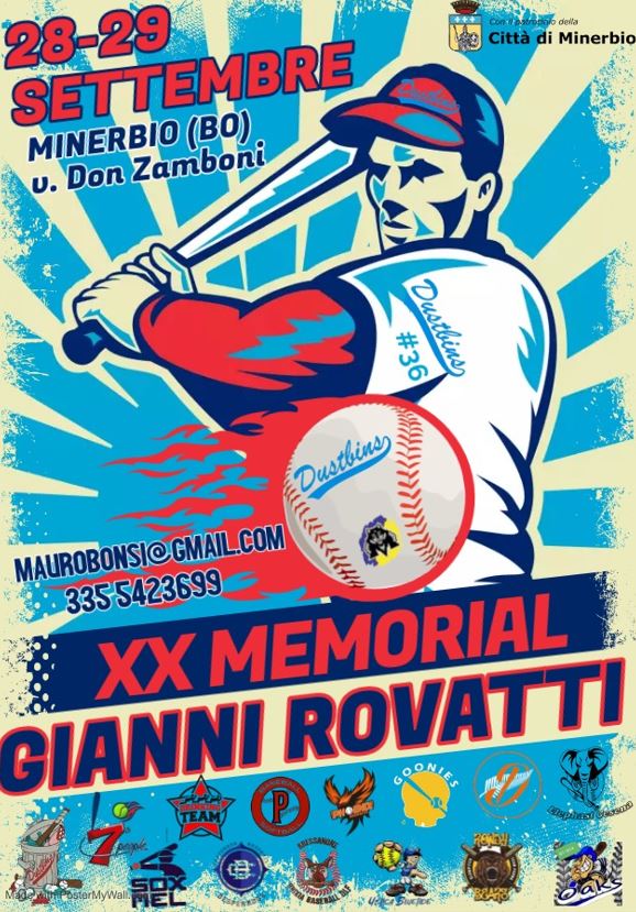 Sabato 28 e domenica 29 settembre 2024 BCM Baseball Club organizza il 20° MEMORIAL GIANNI ROVATTI presso Campo da Baseball di Minerbio (Via Don Zamboni, 5), torneo nazionale F.I.B.S. di Softball amatoriale.
