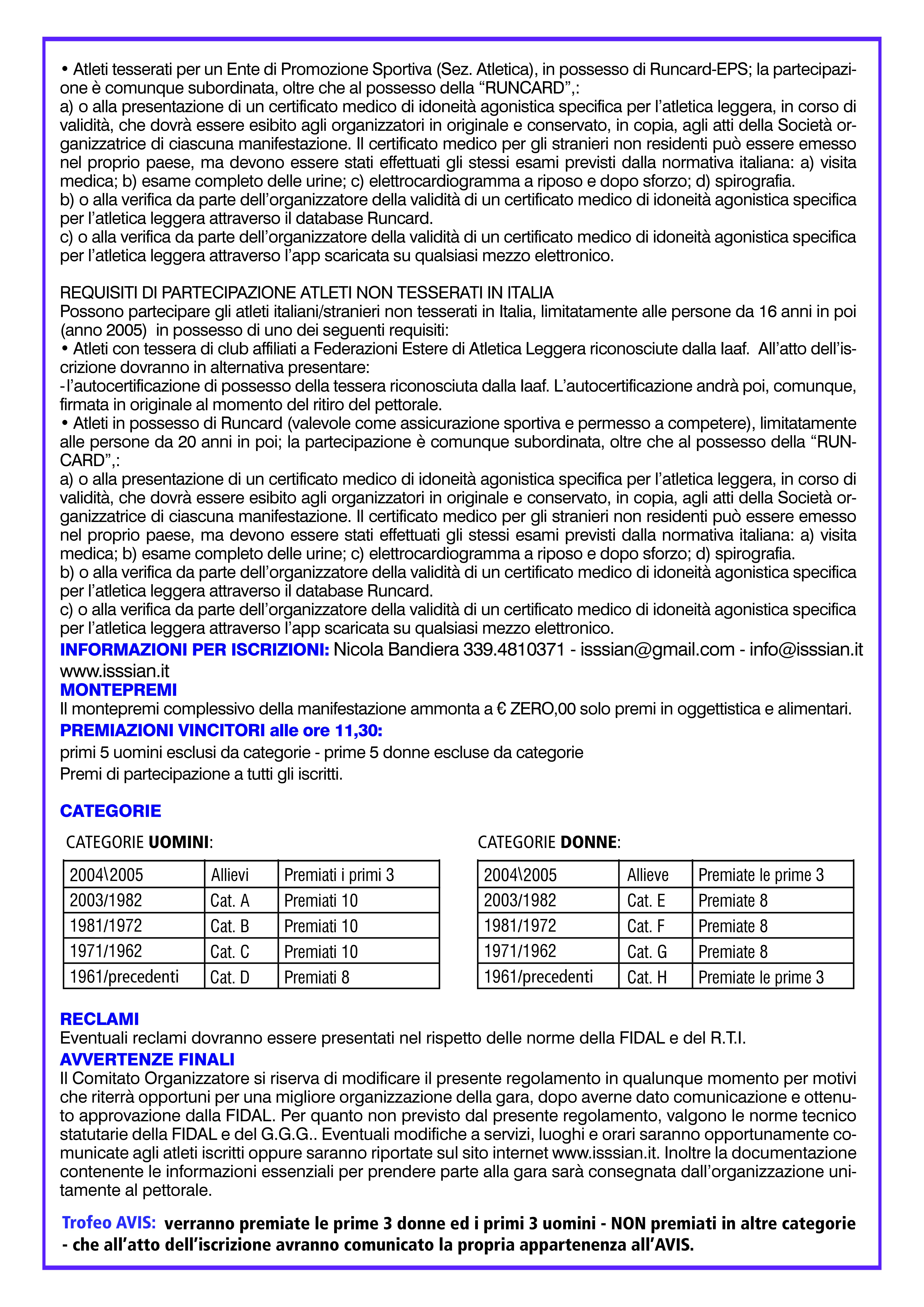 L'iscrizione dei singoli sarà effettuabile fino a un quarto d'ora prima della partenza.