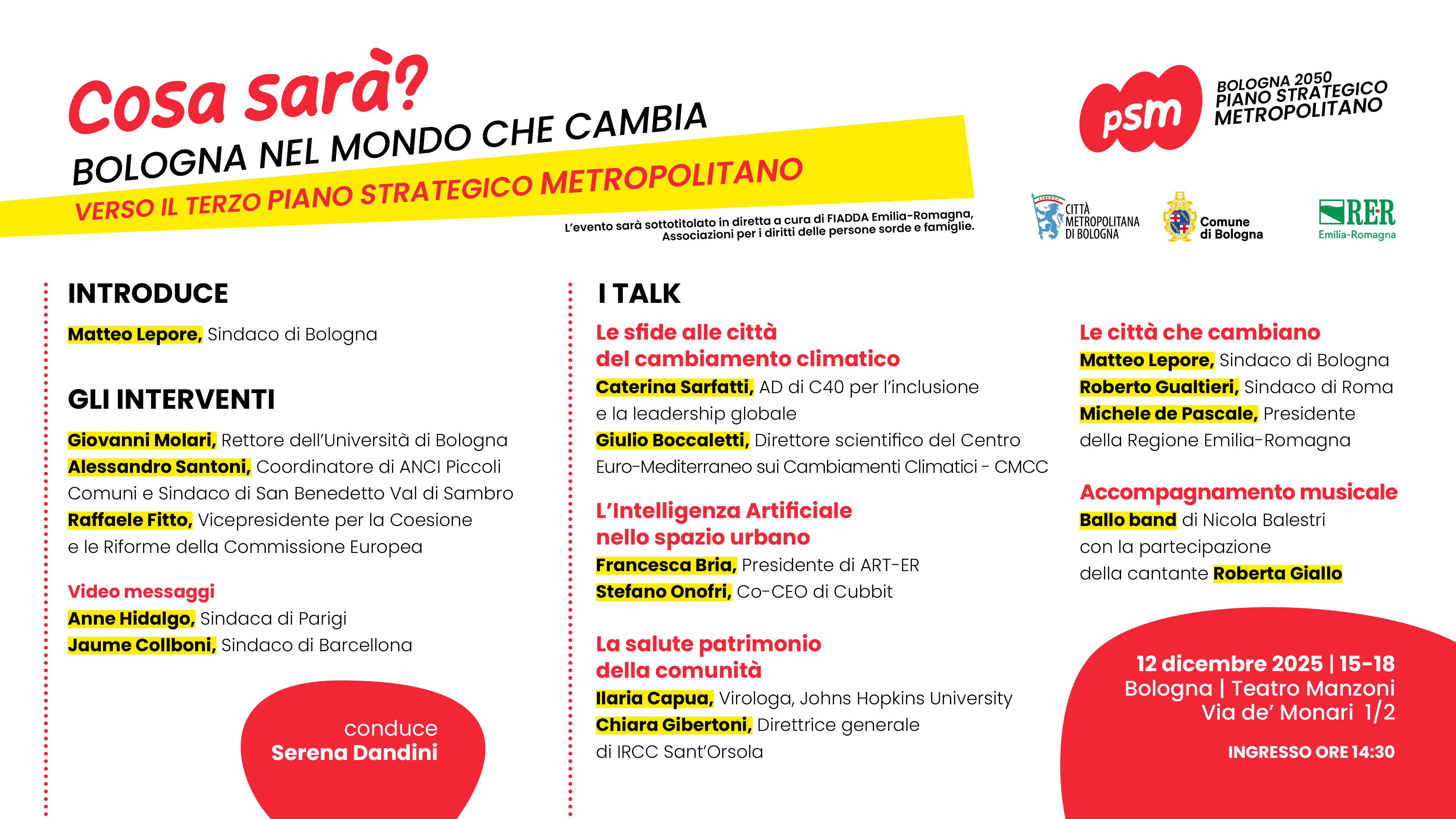L'evento sarà sottotitolato in diretta a cura di FIADDA Emilia-Romagna, Associazioni per i diritti delle persone sorde e famiglie.