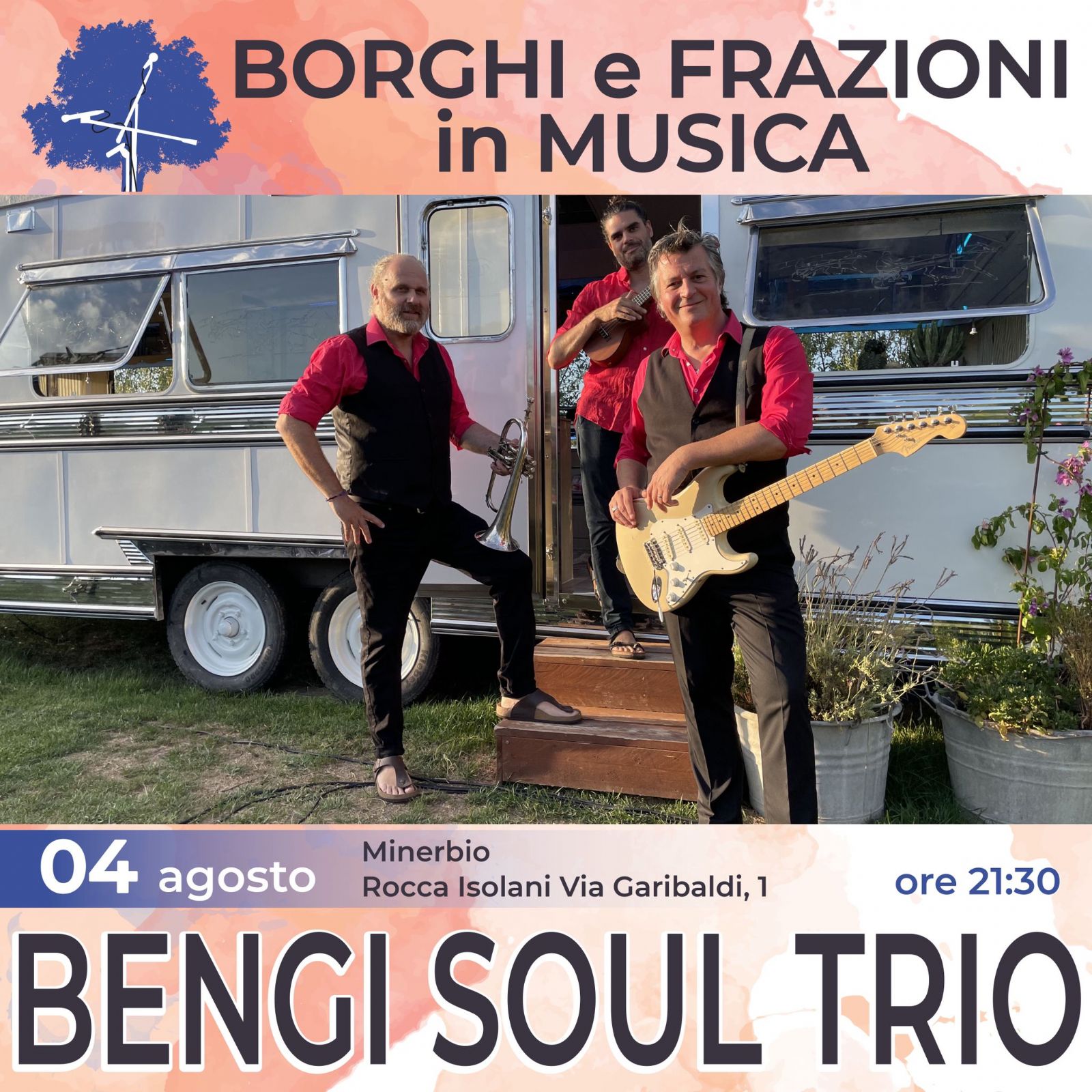Giovedì 4 Agosto alle ore 21.30 il Comune di Minerbio, nella splendida location di Rocca Isolani, ospiterà il concerto del Bengi Soul Trio con un elegante repertorio di canzoni italiane anni '60, '70 e '80 e della soul music americana.