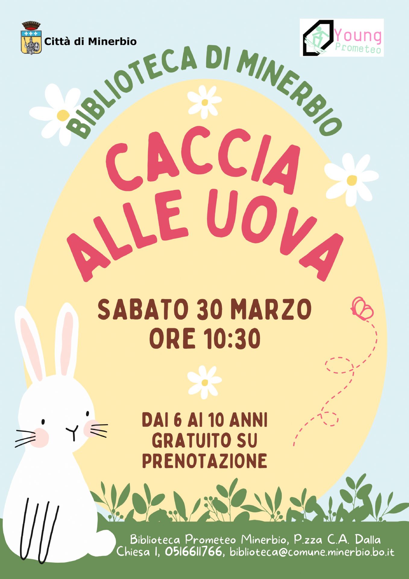 Sabato 30 marzo 2024 alle ore 10.30 presso la Biblioteca Comunale di Minerbio si svolgerà la CACCIA ALLE UOVA, per bambini dai 6 ai 10 anni.