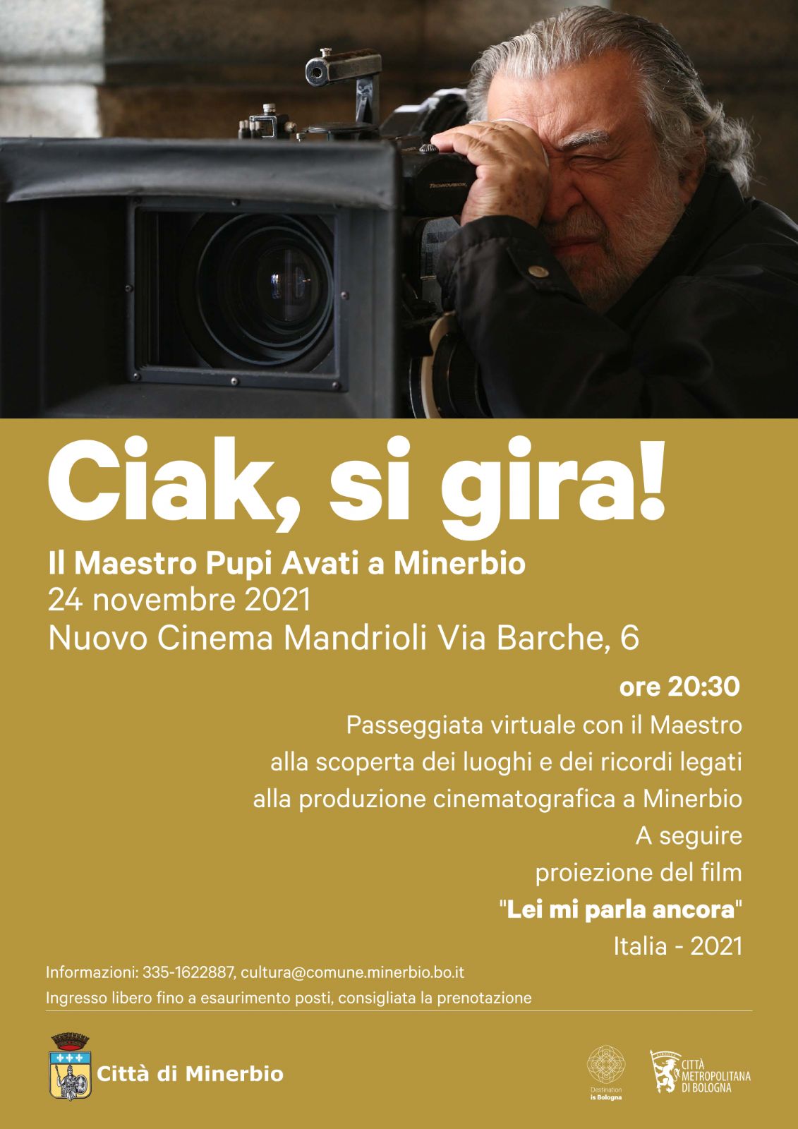 Nell'ambito del progetto di Cine-turismo metropolitano, "Ciak, si gira!", il Comune di Minerbio ospiterà mercoledì 24 novembre il Maestro Pupi Avati per un incontro dedicato alla sua cinematografia sul territorio.