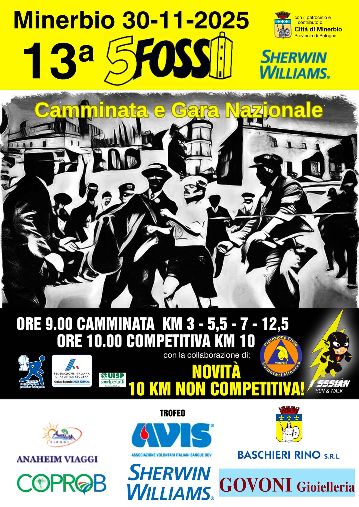 Domenica 30 Novembre torna la 13° edizione della "CINQUE FOSSI -RUN&WALK", Camminata e Gara nazionale.