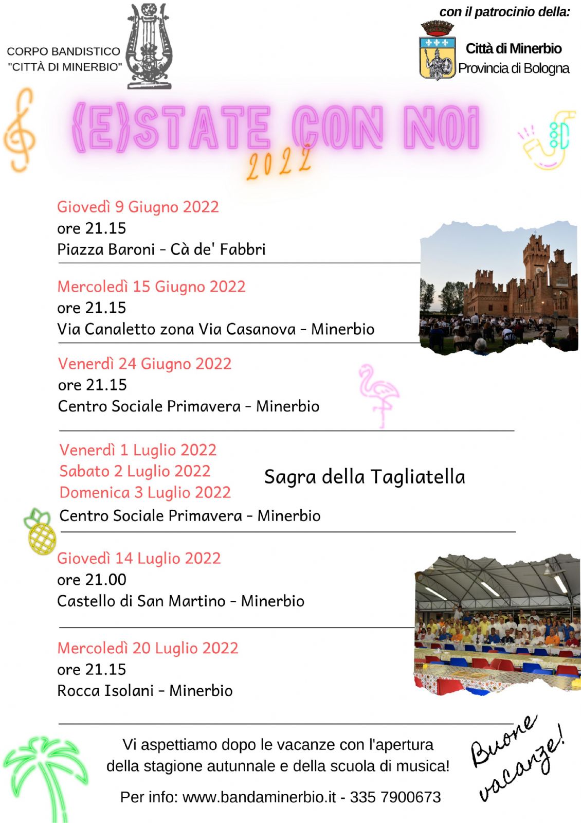 Al via un ricco calendario estivo di appuntamenti musicali in compagnia del Corpo Bandistico Città di Minerbio.