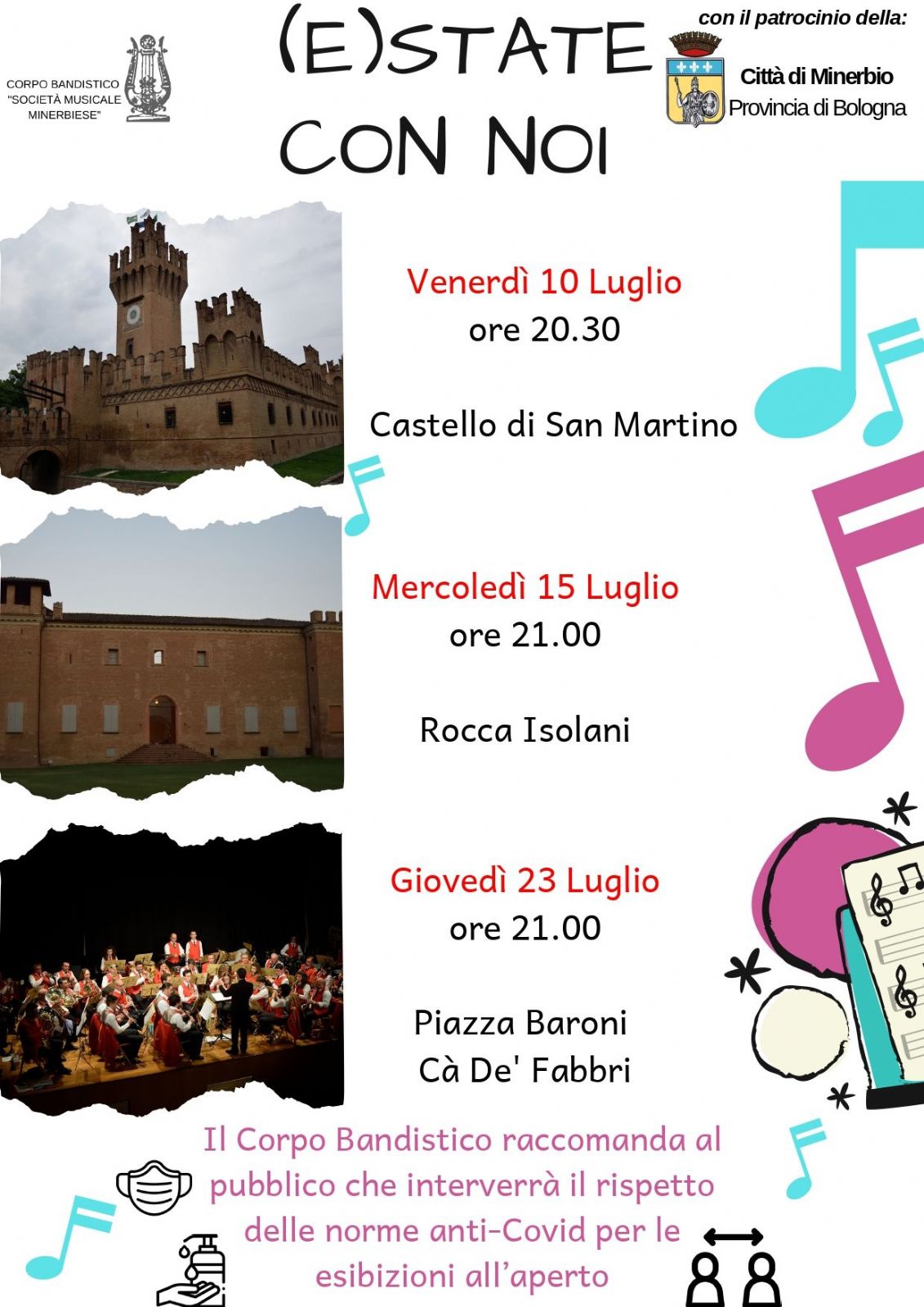 Giovedì 23 Luglio, alle ore 21.00, presso Piazza Baroni (Ca' de Fabbri) si terrà il concerto del Corpo Bandistico Città di Minerbio.