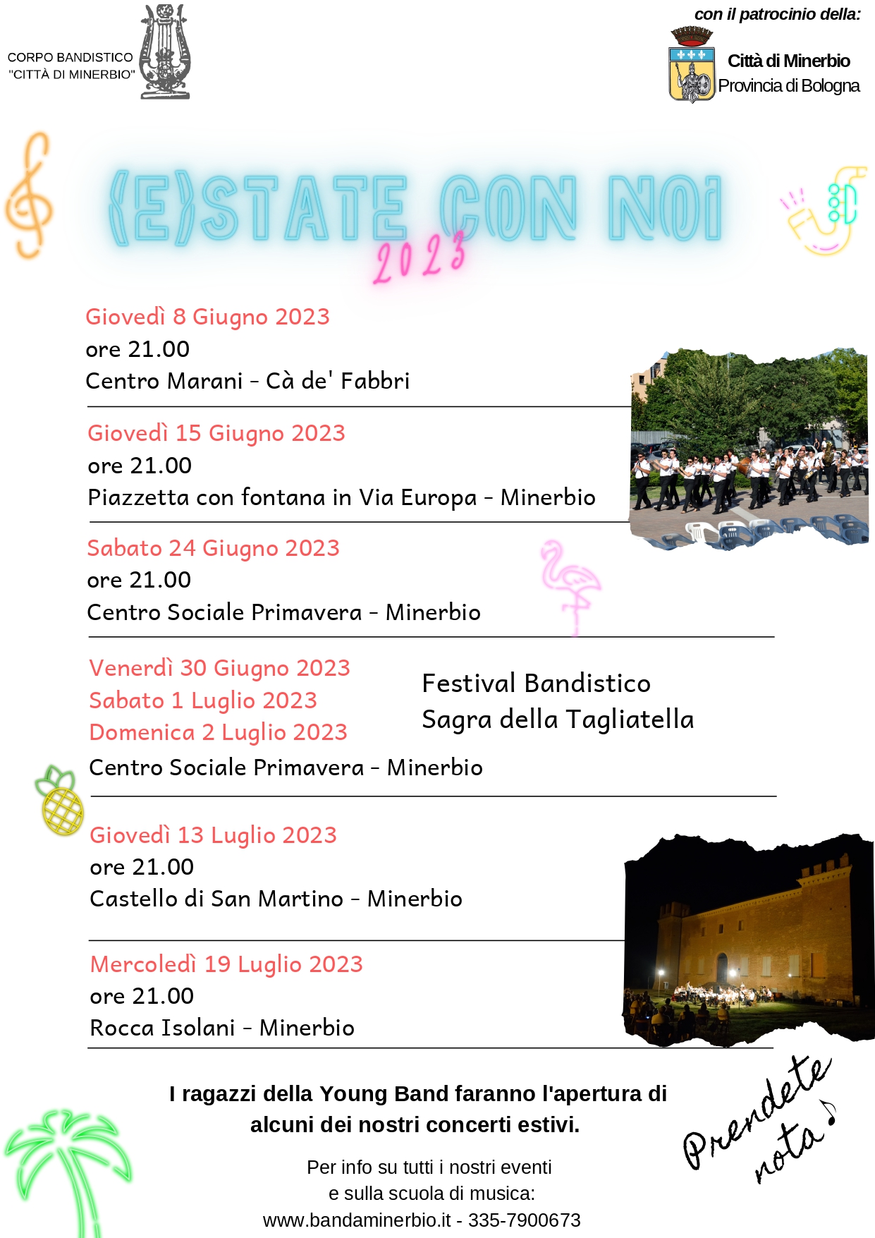 Giovedì 13 luglio 2023 alle ore 21.00 si terrà il concerto del Corpo Bandistico Città di Minerbio presso il Castello di San Martino dei Manzoli.