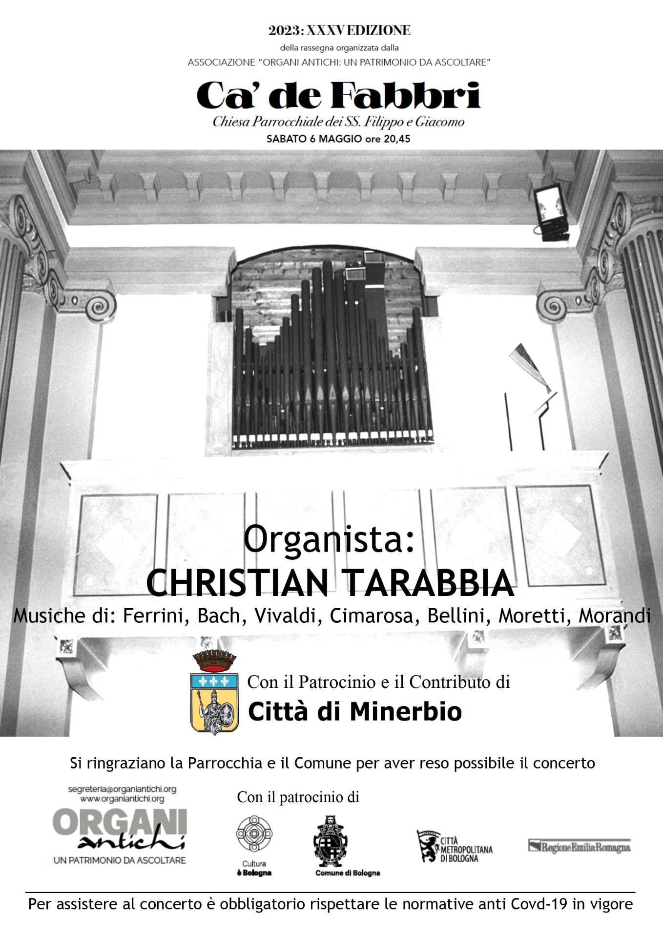 Sabato 6 maggio 2023 alle ore 20.45 si terrà il concerto di organi antichi presso la Chiesa Parrocchiale dei SS. Filippo e Giacomo di Ca' de' Fabbri, all'interno della XXXV edizione della rassegna organizzata dall'Associazione Organi Antichi: un patrimonio da ascoltare
