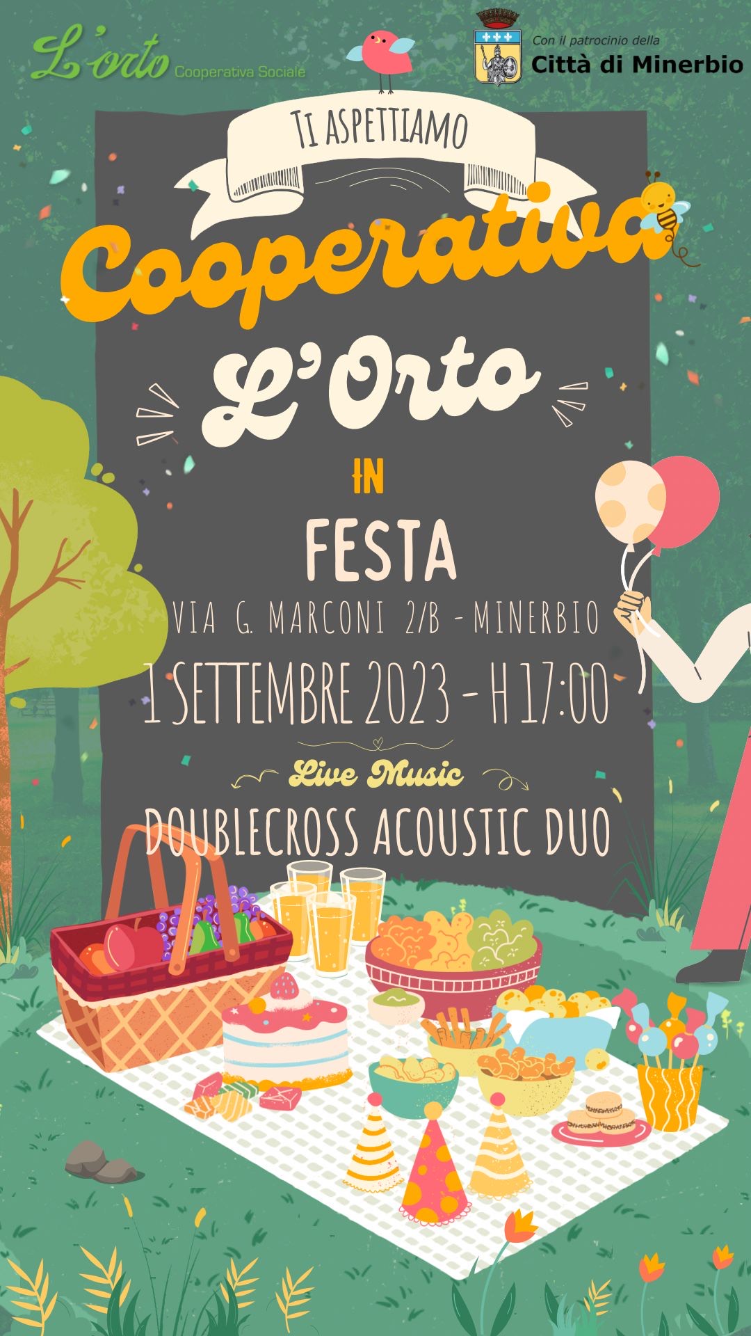 Venerdì 1° settembre 2023 alle ore 17:00 si terrà "Cooperativa L'orto in festa" in via G. Marconi 2/B a Minerbio.