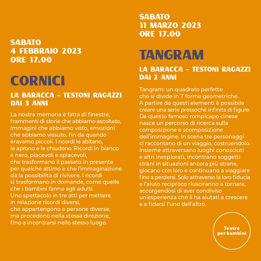 In scena Cornici a cura di La Baracca - Testoni ragazzi- consigliato dai 3 anni.