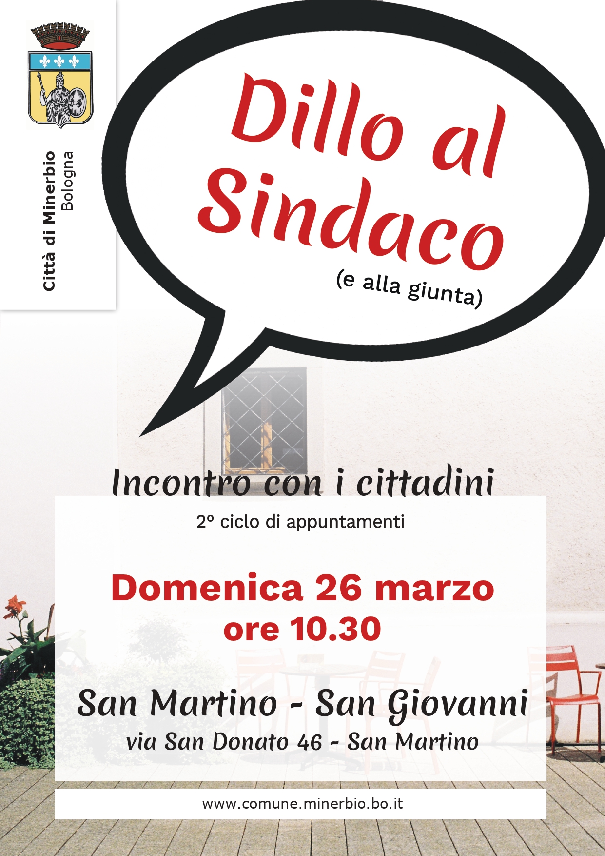 Domenica 26 marzo alle ore 10:30 in via San Donato 46 a San Martino si terrà l'appuntamento di Dillo al Sindaco, durante il quale il primo cittadino e la giunta incontreranno la cittadinanza