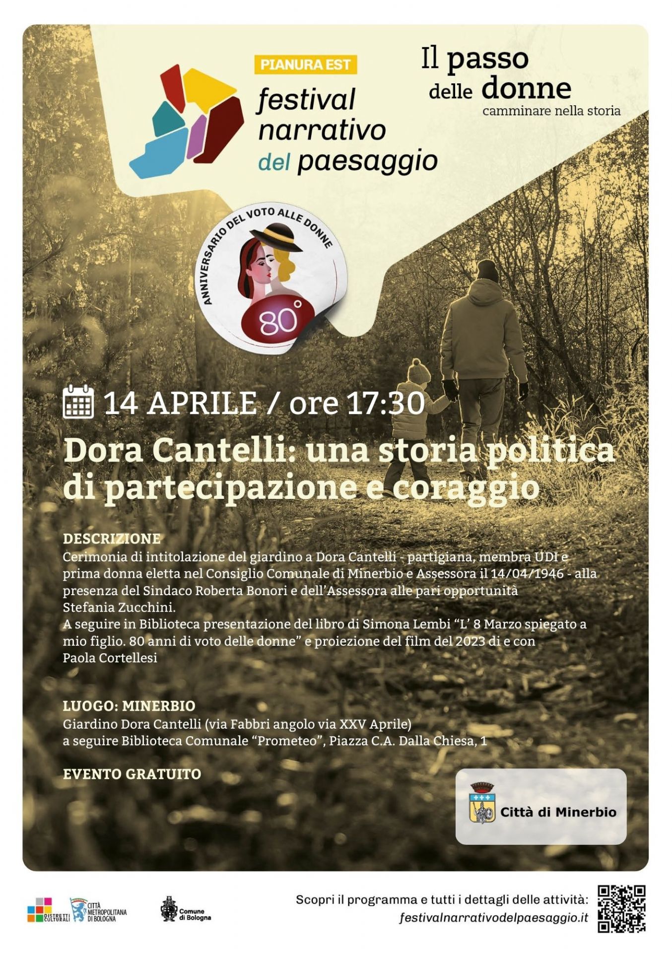 Promosso dalla Città metropolitana di Bologna e realizzato in collaborazione con i sei Distretti culturali, il Festival Narrativo del Paesaggio giunge nel 2026 a una nuova edizione che intreccia memoria e futuro. Quest’anno il festival si inserisce nel quadro delle celebrazioni per gli 80 anni dal primo voto politico nazionale delle donne in Italia (2 giugno 1946), un passaggio storico che ha trasformato in modo profondo il paesaggio civile, sociale e democratico del Paese.