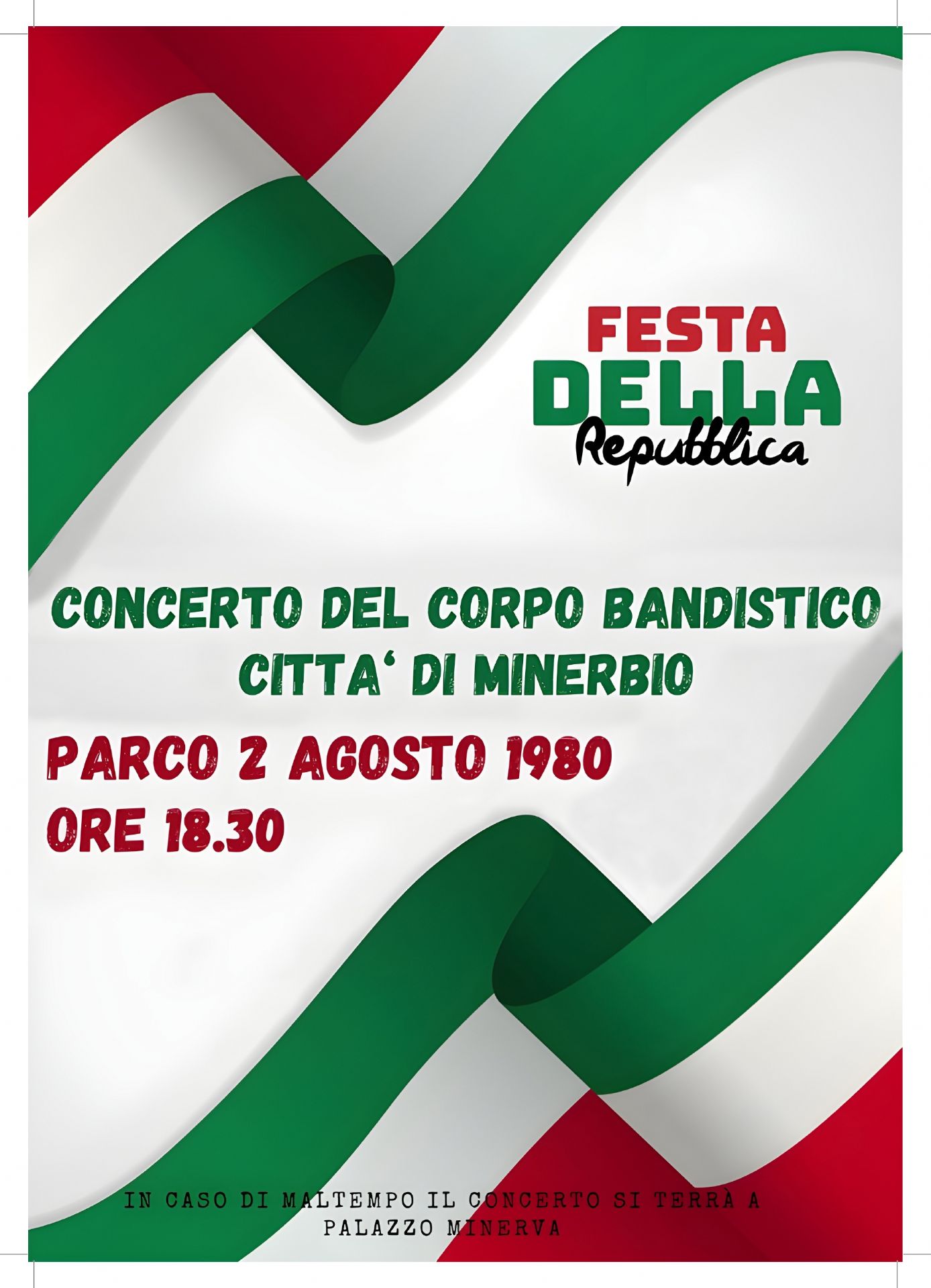 In occasione della Festa della Repubblica, il 2 giugno si terrà il concerto del Corpo bandistico della Città di Minerbio presso il Parco 2 agosto 1980 alle ore 18.30.