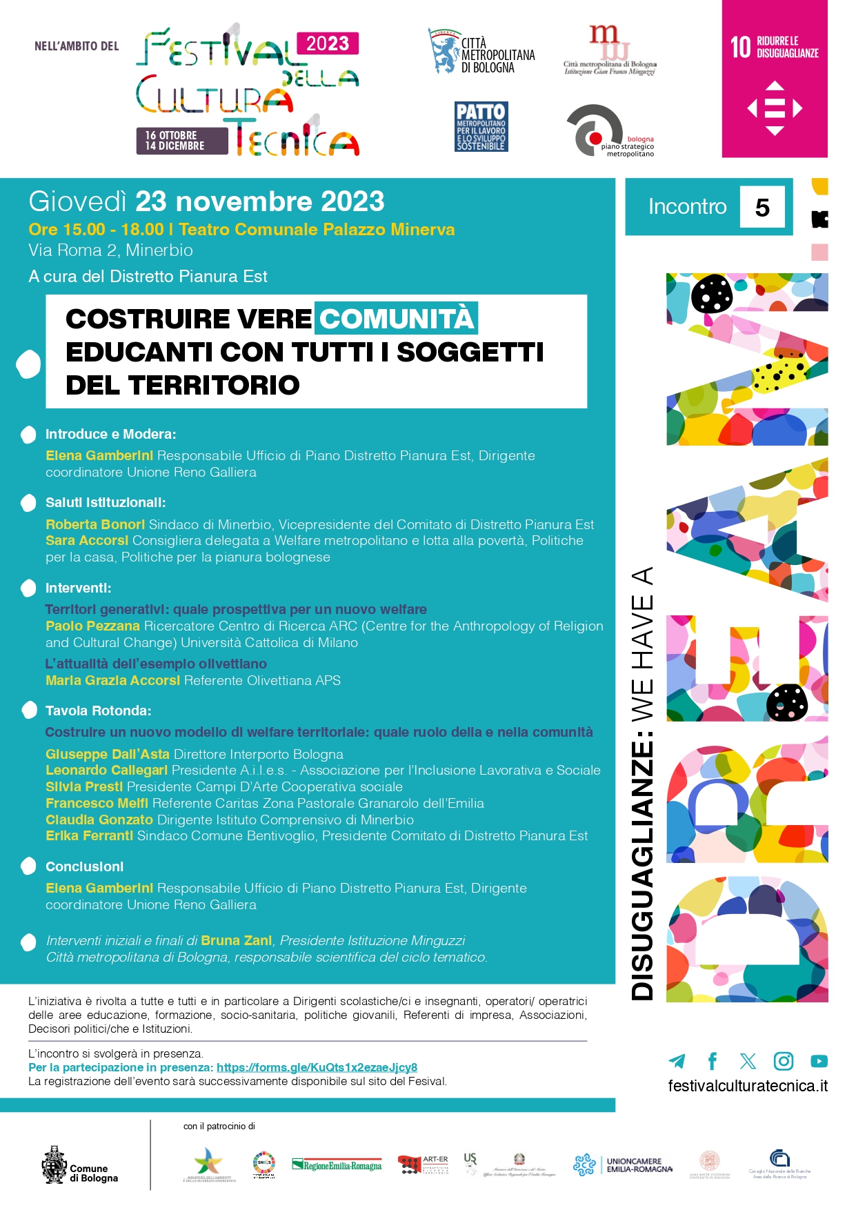 Giovedì 23 novembre 2023 presso il Teatro Palazzo Minerva (via Roma, 2 Minerbio) dalle ore 15.00 alle ore 18.00, nell'ambito del Festival della cultura tecnica, a cura del Distretto Pianura Est:
