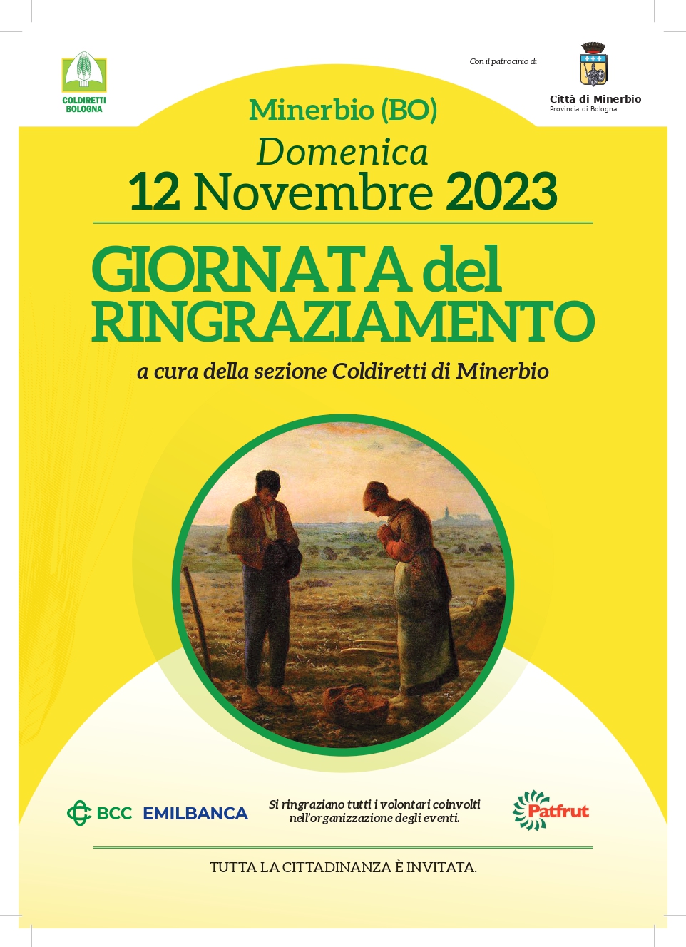 Domenica 12 novembre 2023 torna a Minerbio la tradizionale Giornata del Ringraziamento a cura della sezione Coldiretti di Minerbio.