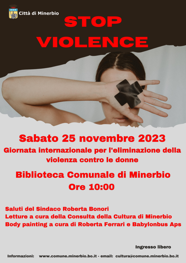 Sabato 25 novembre 2023, in occasione della Giornata internazionale per l'eliminazione della violenza contro le donne, si svolgerà un evento presso la Biblioteca Comunale di Minerbio alle ore 10:00.