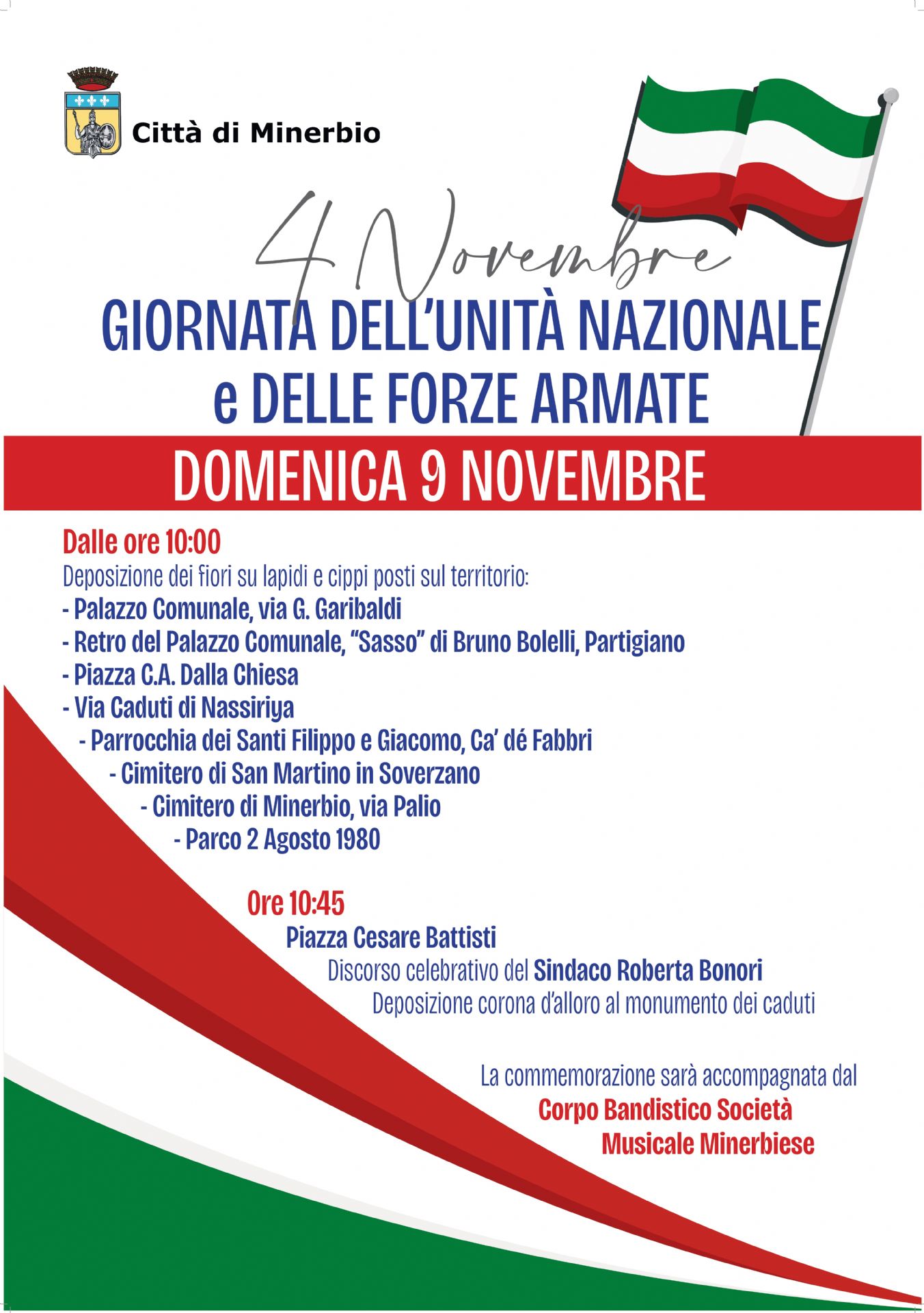 Il Giorno dell'Unità Nazionale e Festa delle Forze Armate 2025, prevista da ricorrenza il 4 Novembre, sarà celebrata domenica 9 Novembre, con il seguente programma: