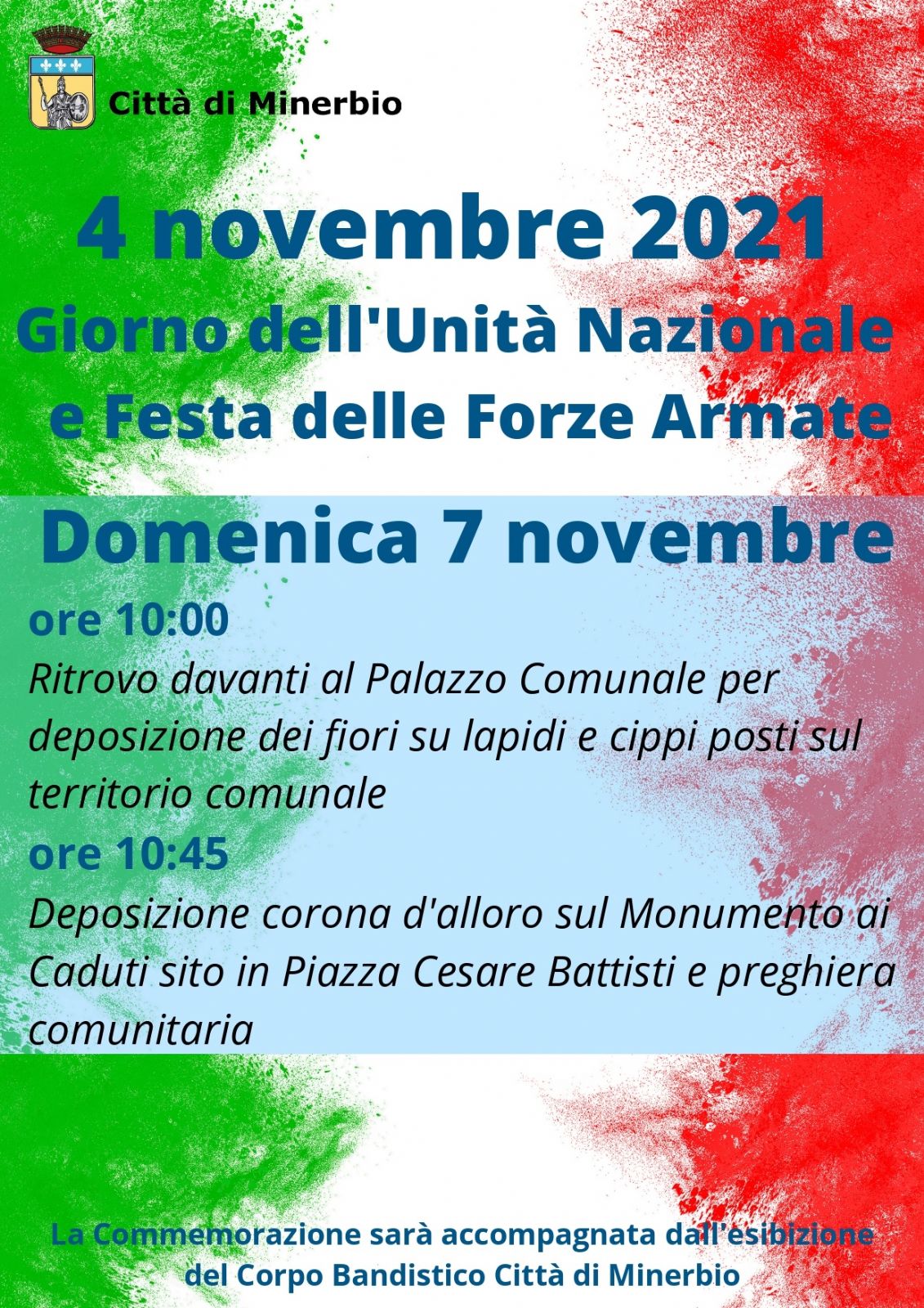Il Giorno dell'Unità Nazionale e Festa delle Forze Armate 2021, prevista da ricorrenza il 4 Novembre, sarà celebrata domenica 7 Novembre, con il seguente programma: