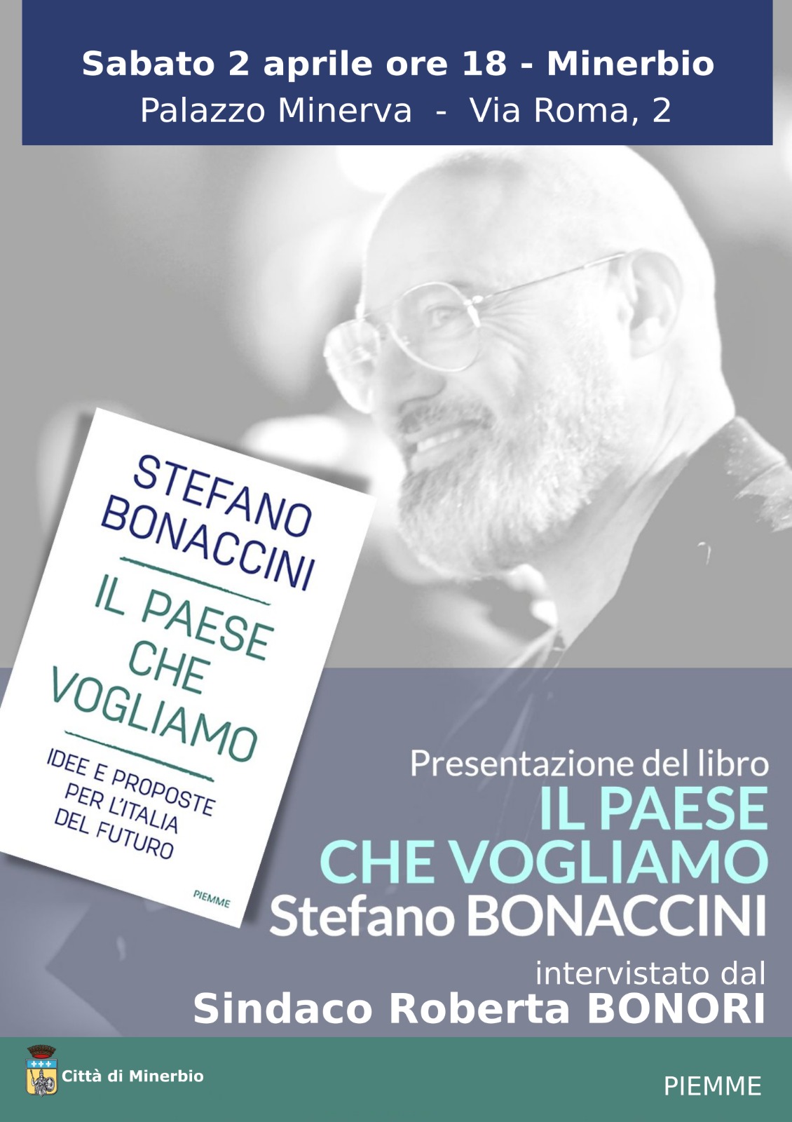 Sabato 2 aprile alle ore 18.00 presso Palazzo Minerva il Presidente della Regione Emilia-Romagna Stefano Bonaccini presenterà il suo ultimo libro "Il Paese che vogliamo. Idee e proposte per l'Italia del futuro", PIEMME 2021.