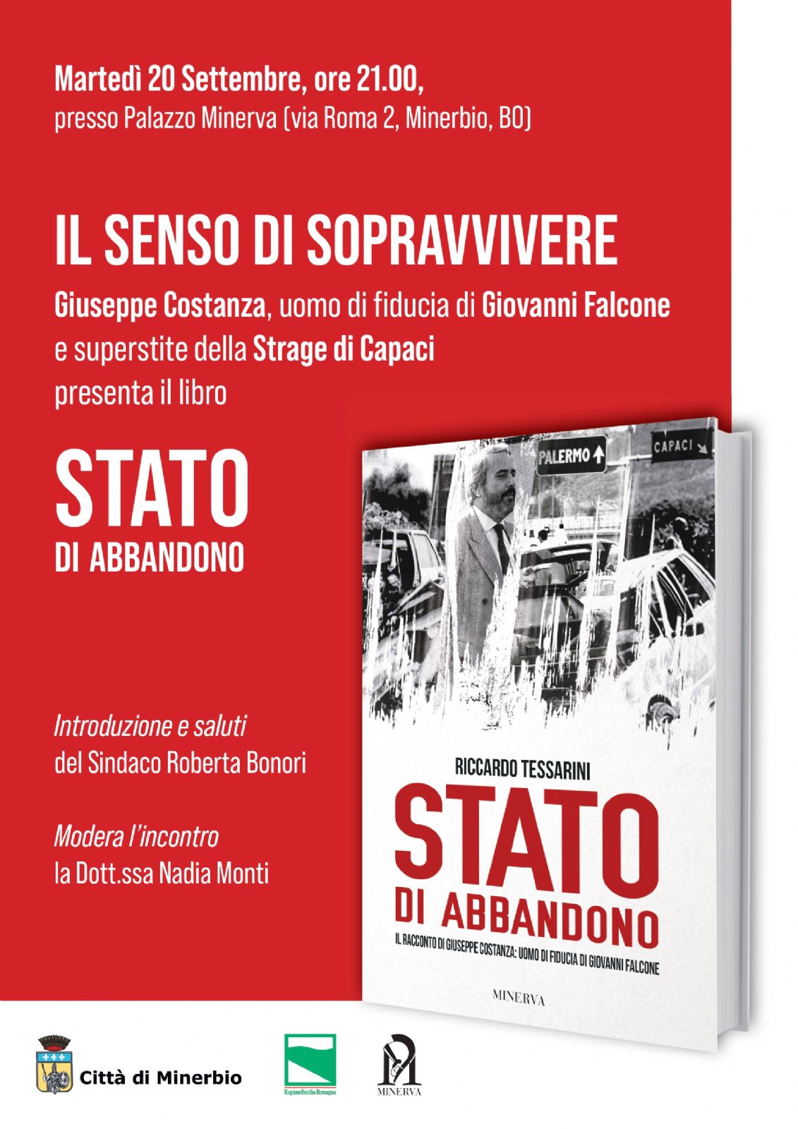 Martedì 20 settembre alle ore 21.00 l'Amministrazione comunale ospiterà, in collaborazione con la casa editrice Minerva, a Palazzo Minerva Giuseppe Costanza: autista e uomo di fiducia di Giovanni Falcone, sopravvissuto alla strage di Capaci del 23 Maggio 1992.