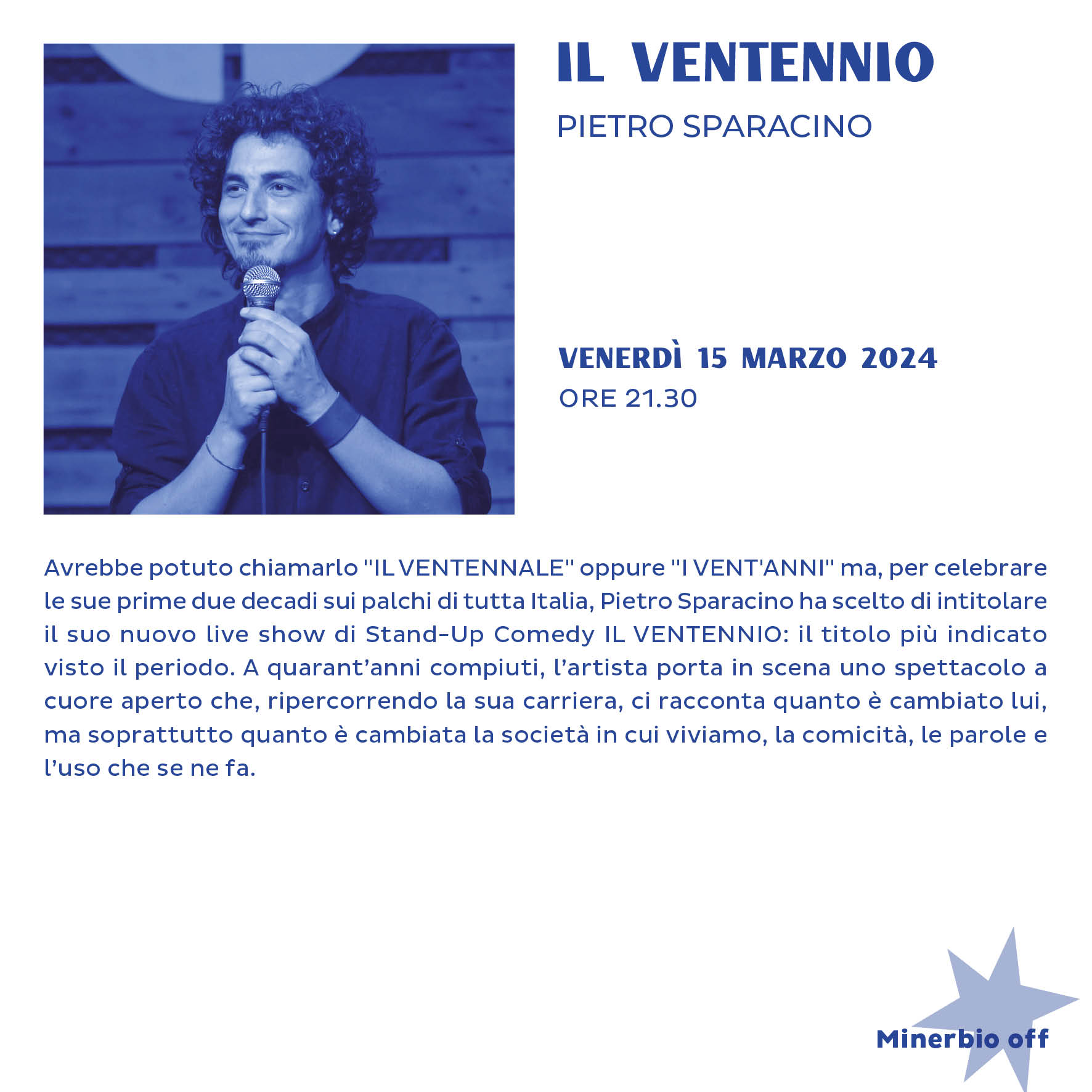 Venerdì 15 marzo 2024 alle ore 21.30, ultimo appuntamento della rassegna Minerbio Off della stagione teatrale 2022/2023 di Palazzo Minerva.