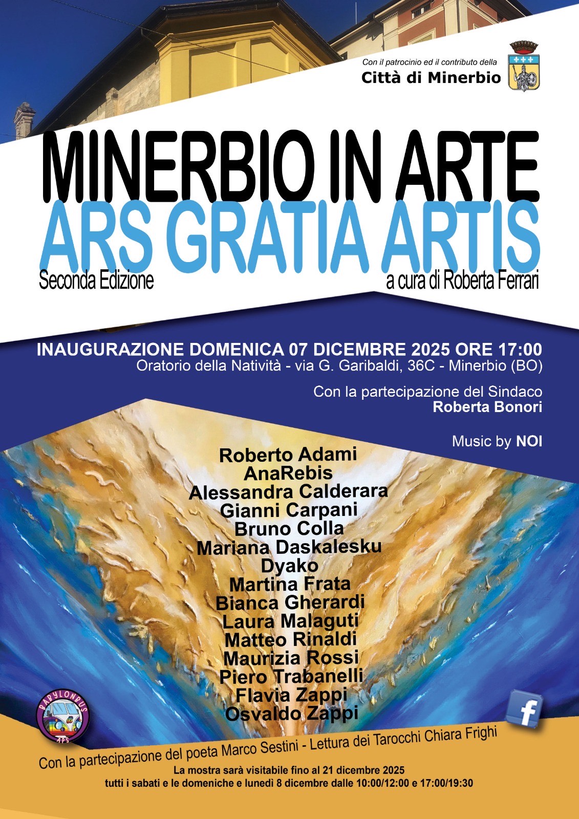 Il Comune di Minerbio è lieto di annunciare la seconda edizione della mostra MINERBIO IN ARTE – Ars Gratia Artis, a cura di Roberta Ferrari.