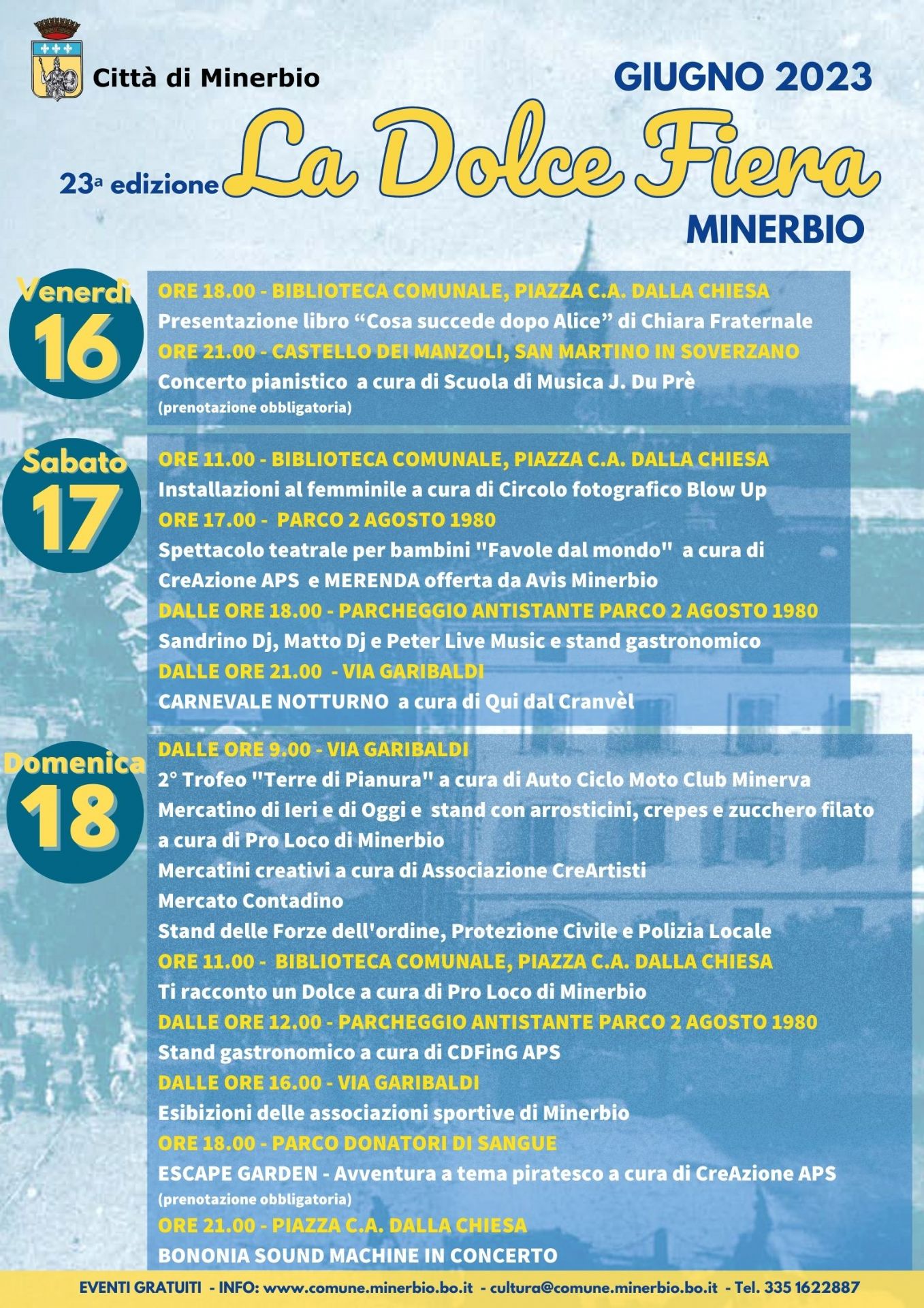 Da venerdì 16 a domenica 18 giugno 2023 torna a Minerbio LA DOLCE FIERA, giunta alla 23° edizione, con un ricco programma di iniziative, tutte gratuite.