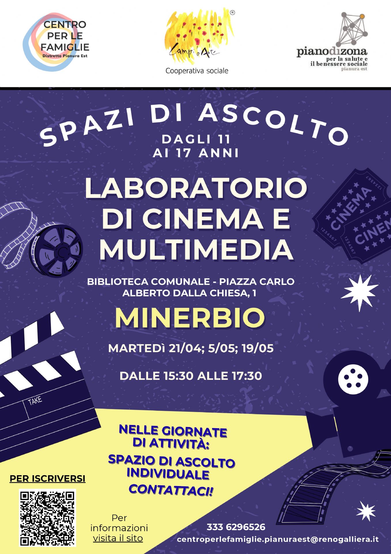 Martedì 2 aprile, 5 e 19 maggio dalle ore 15.30 alle ore 17.30 presso la Biblioteca Comunale di Minerbio si terrà un Laboratorio di cinema e multimediale.