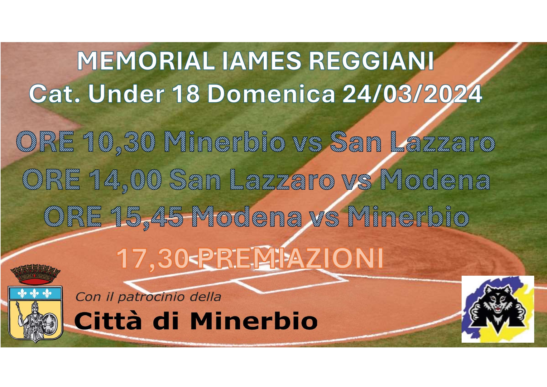 Sabato 23 e domenica 24 marzo 2024 presso il Campo da Baseball di Minerbio in via Don Zamboni si terrà il Memorial Iames Reggiani, organizzato dal BCM Baseball Club, con il patrocinio del Comune di Minerbio.