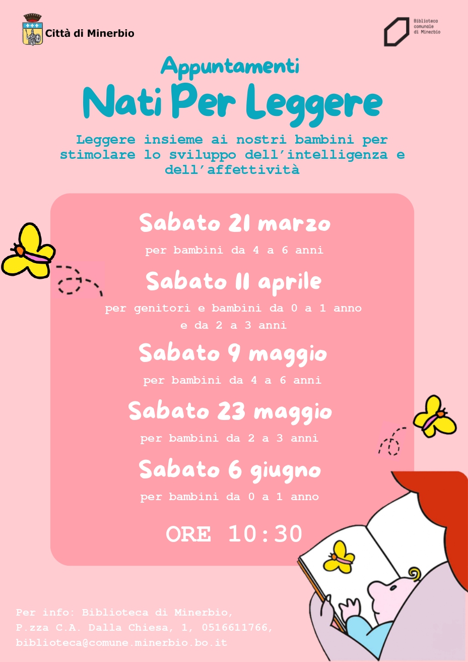 Sabato 9 maggio 2026 alle ore 10.30 presso la Biblioteca Comunale Prometeo di Minerbio (Piazza C.A. Dalla Chiesa, 1 Minerbio) si terrà il primo appuntamento primaverile di Nati per leggere, dedicato ai bambini da 4 a 6 anni.
