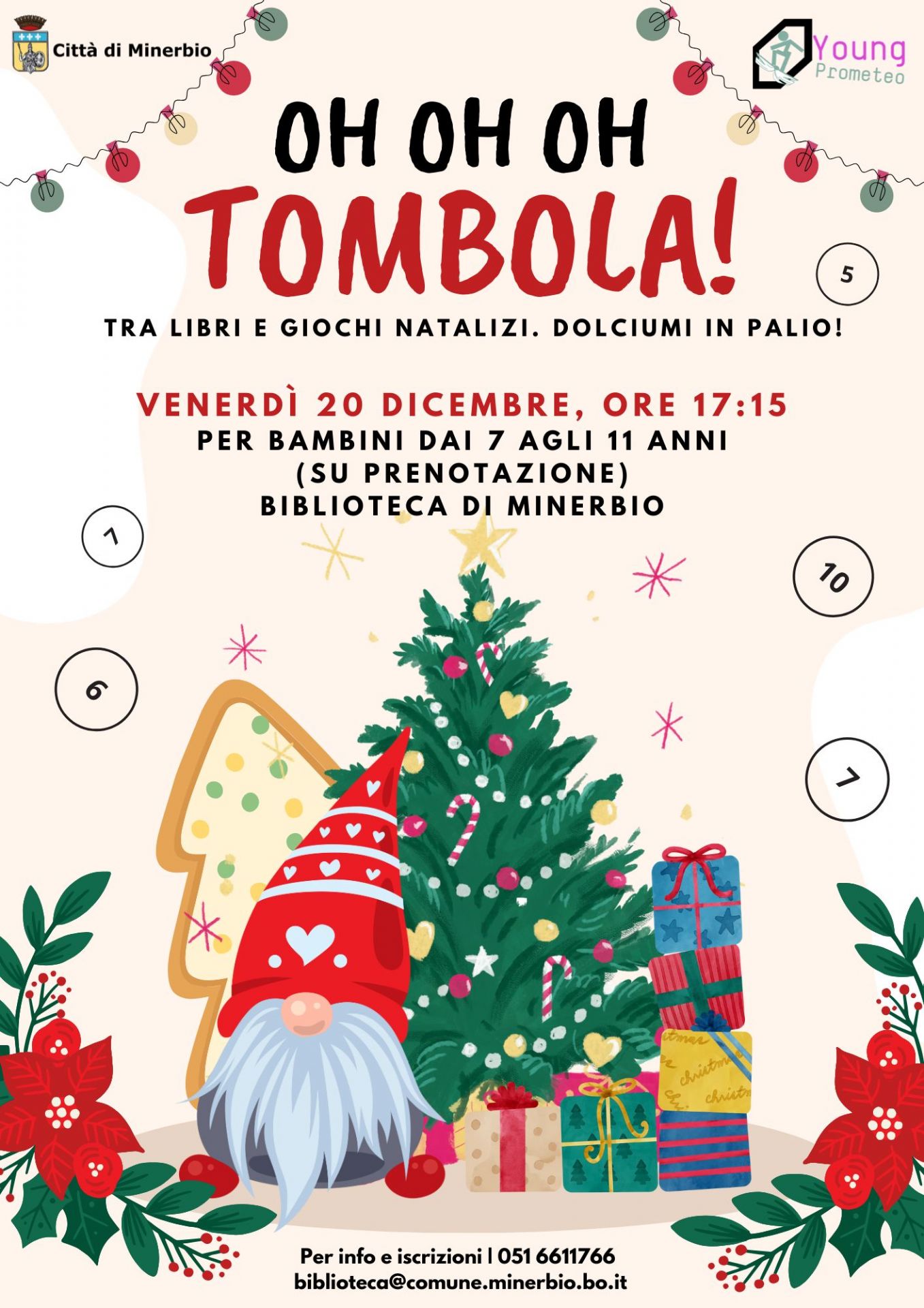 Venerdì 20 dicembre 2024 alle ore 17.15 presso la Biblioteca Comunale di Minerbio si terrà l'iniziativa OH OH OH... Tombola! Tra libri e giochi natalizi e dolciumi in palio. Su prenotazione , per bambini dai 7 agli 11 anni.
