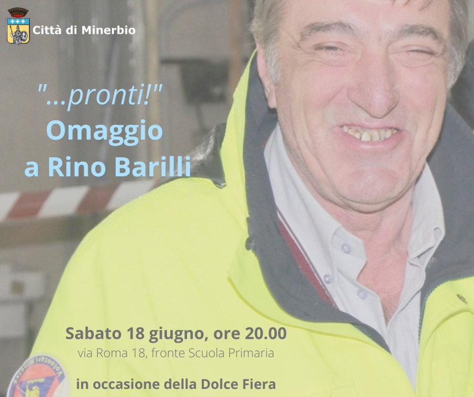 Sabato 18 giugno, alle ore 20 di fronte alla scuola Primaria di Minerbio, in occasione della Dolce Fiera, si terrà l'inaugurazione dell'omaggio che il Comune di Minerbio ha ideato per ricordare Rino Barilli.