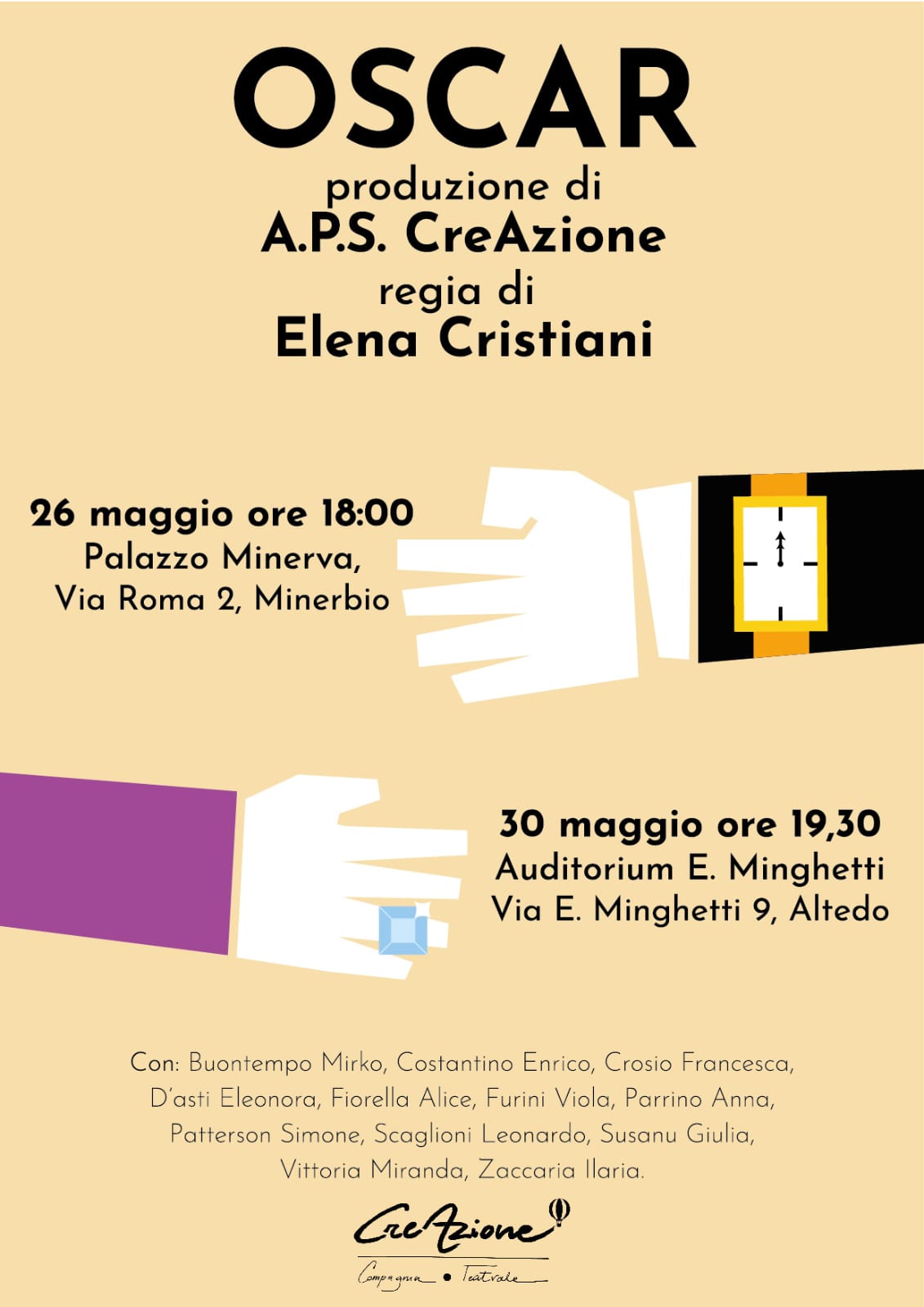 Sabato 26 maggio alle ore 18 a Palazzo Minerva si terrà lo spettacolo OSCAR, saggio di danza della compagnia teatrale Creazione.