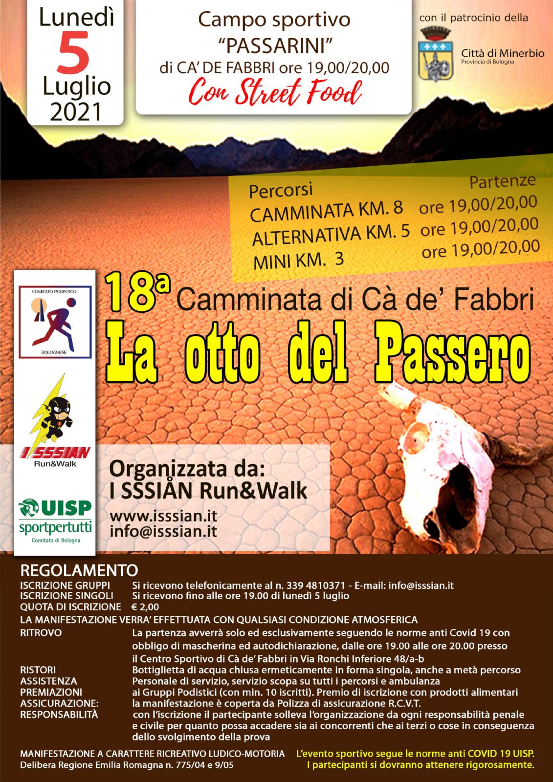 Lunedì 5 luglio dalle ore 19 alle ore 20, torna l'evento sportivo dell'estate, la camminata "otto del Passero" giunta alla sua 18esima edizione. La partenza sarà a Cà de Fabbri da via Ronchi Inferiore, 48/a-b, presso il Centro Sportivo.