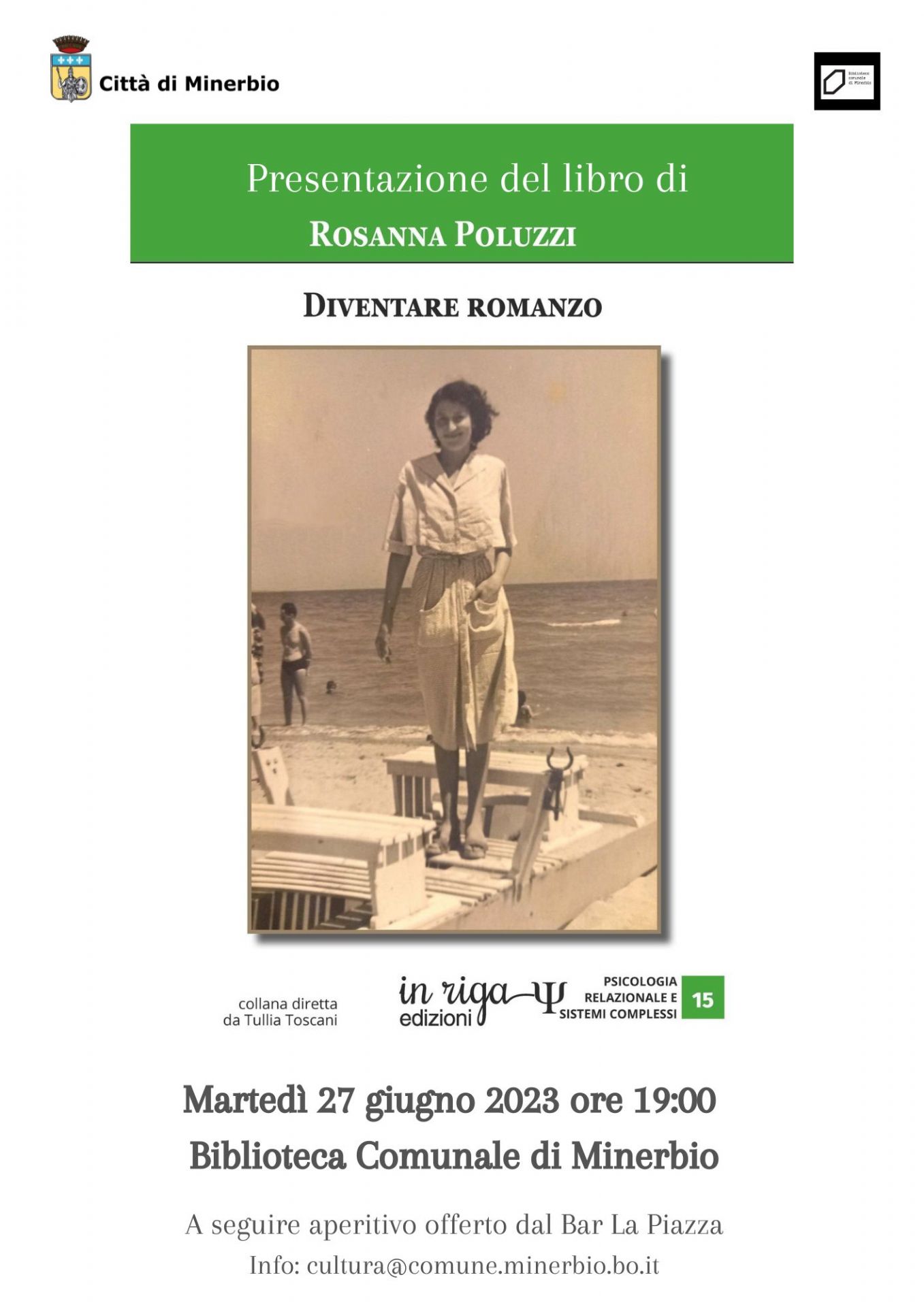 Martedì 27 giugno 2023 alle ore 19.00 presso la Biblioteca Comunale di Minerbio, in Piazza C.A. Dalla Chiesa, si terrà la presentazione del libro di Rosanna Poluzzi "Diventare Romanzo" edito da In Riga Edizioni.