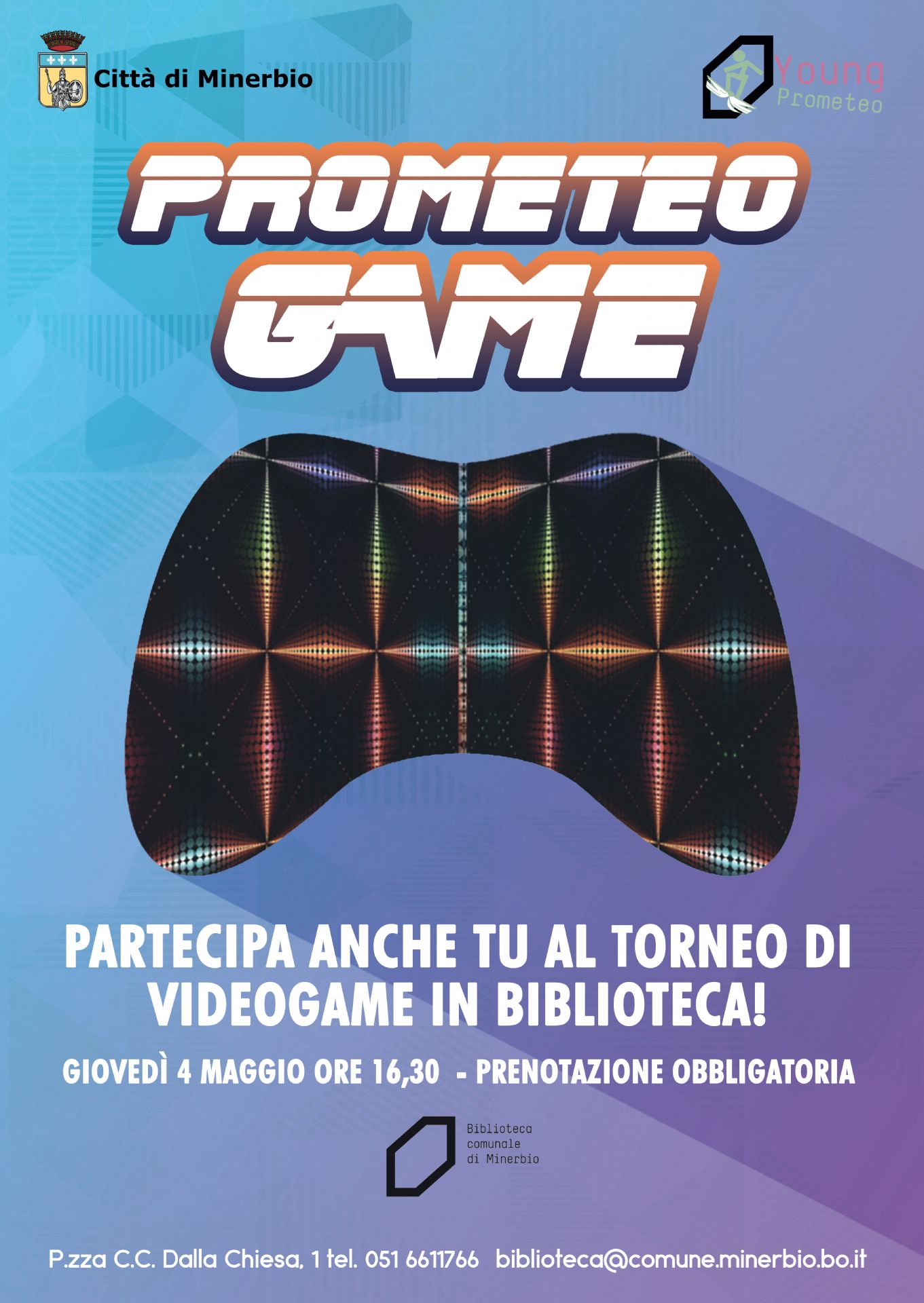 Presso la Biblioteca Comunale Prometeo di Minerbio, giovedì 4 maggio alle ore 16.30 si svolgerà Prometeo Game, un torneo di videogame in biblioteca!