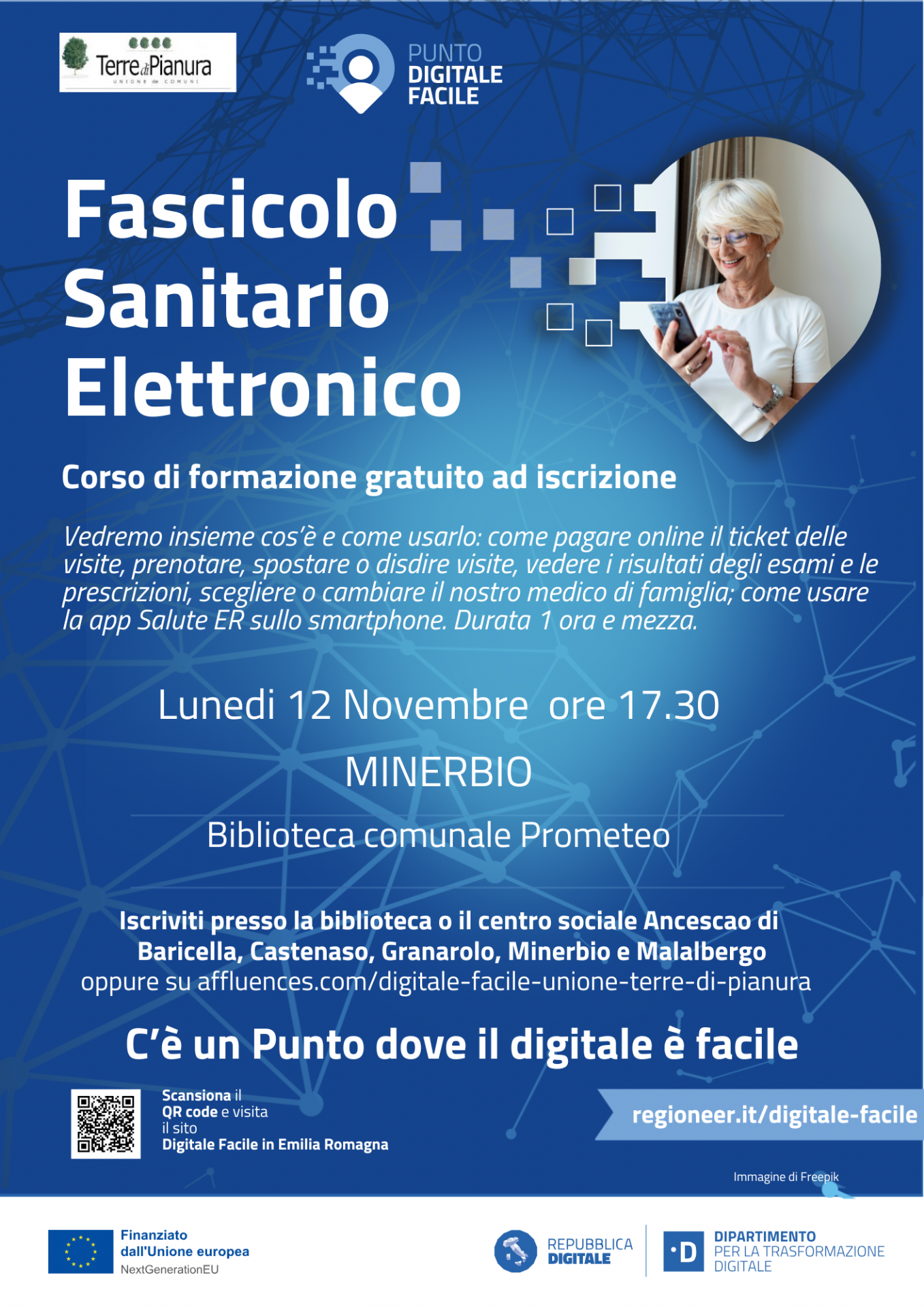 Martedì 12 novembre alle ore 17.30 presso la Biblioteca comunale "Prometeo" di Minerbio si terrà il corso di formazione gratuito sul fascicolo sanitario elettronico.