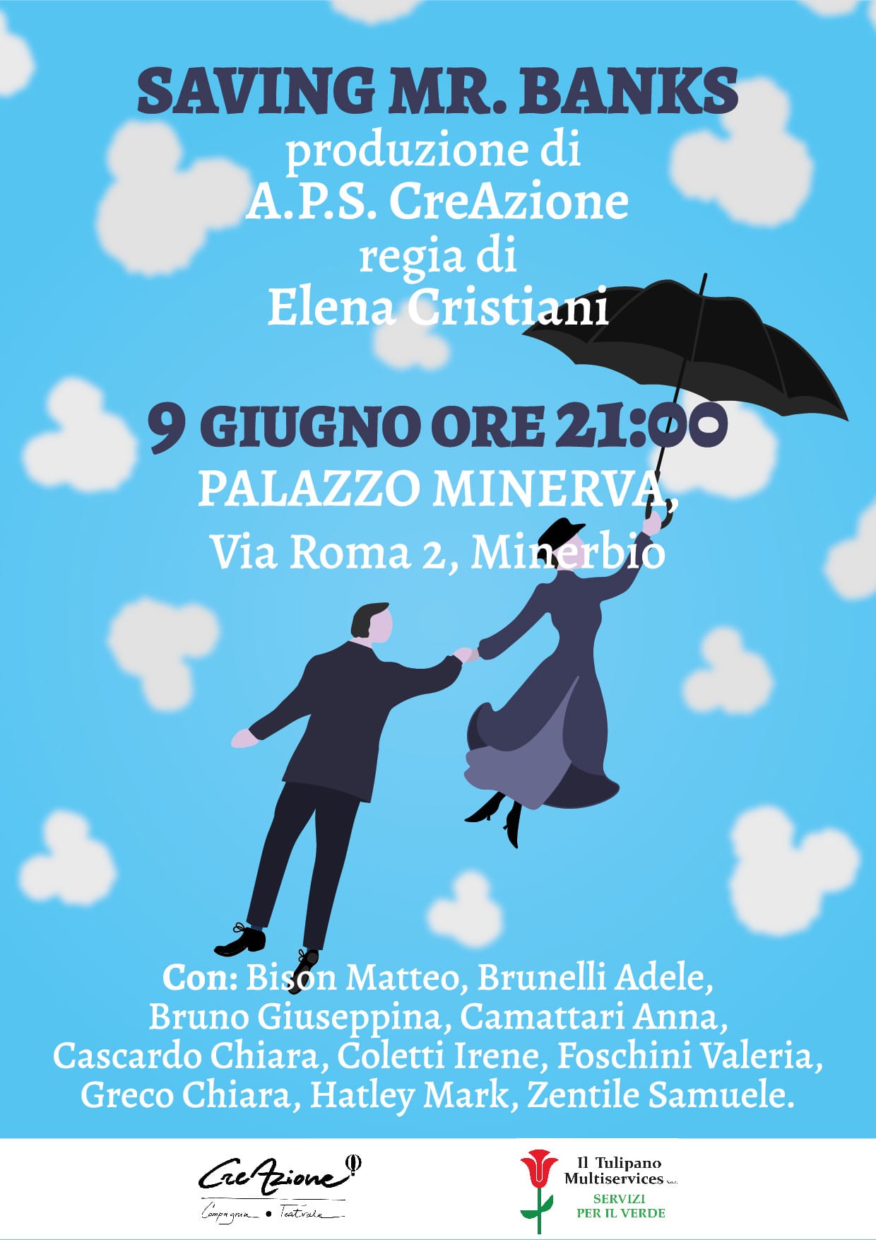 Domenica 9 giugno 2024 alle ore 21.00 a Palazzo Minerva si terrà lo spettacolo SAVING MR. BANKS, regia di Elena Cristiani e produzione di CreAzione APS.