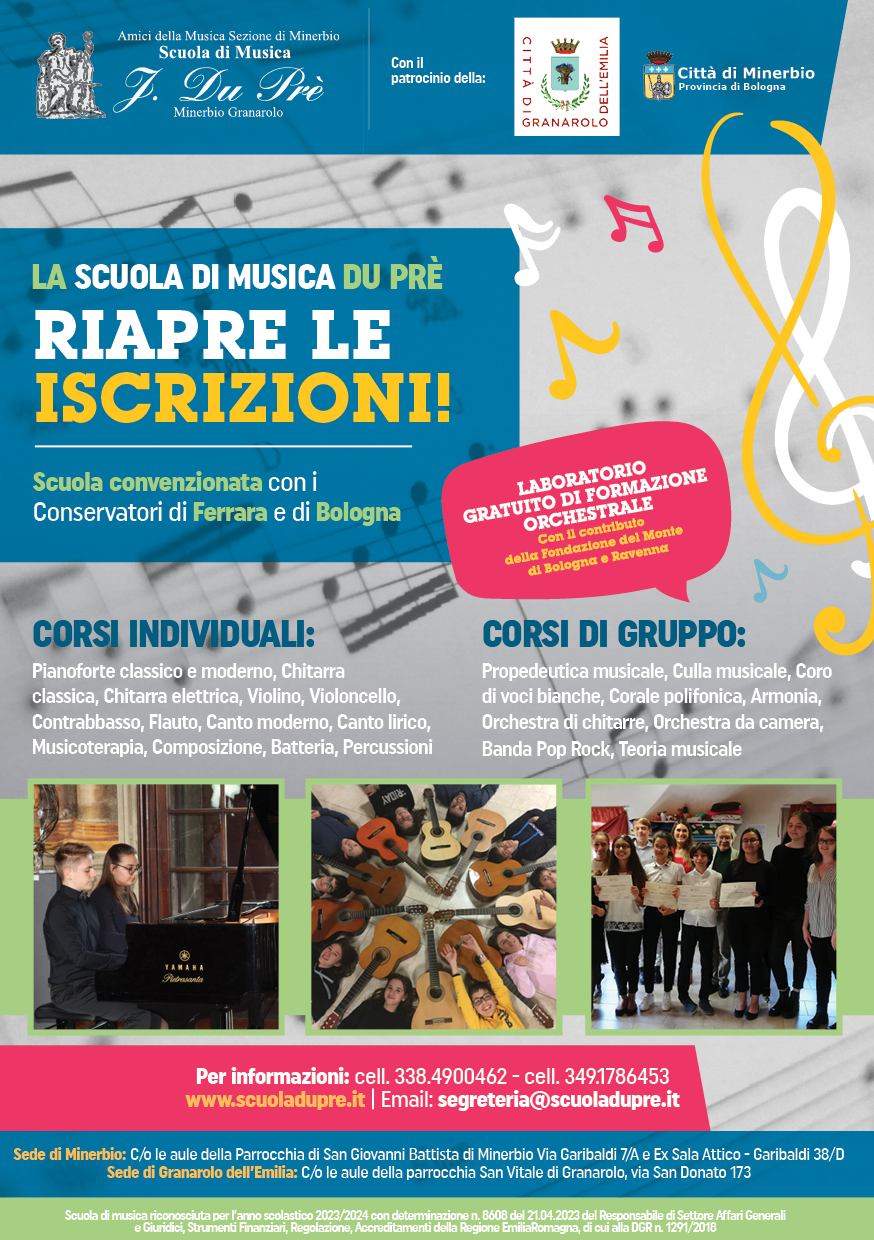 La Scuola di Musica J. Du Prè riapre le iscrizioni ai corsi di musica individuali e di gruppo per bambini, ragazzi e adulti.