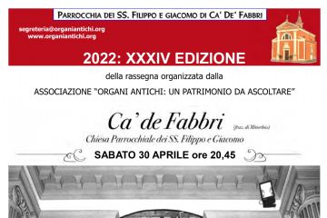 Sabato 30 Aprile alle ore 20.45 presso la Parrocchia di Ca'de'Fabbri San Filippo e Giacomo si terrà il Concerto dell'Associazione Organi Antichi con Marino Benedetti all'oboe e al corno inglese e...