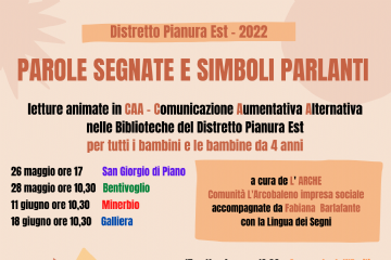 Sabato 11 giugno 2022 alle ore 10,30 presso la Biblioteca Comunale Prometeo di Minerbio si terranno letture animate in CAA - Comunicazione Aumentativa Alternativa - per tutti i bambini e le bambine...