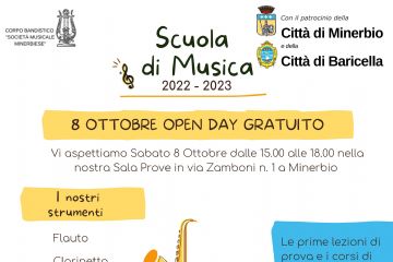 Sabato 8 ottobre 2022 dalle 15.00 alle 18.00 nella Sala Prove in via Zamboni n. 1 a Minerbio Open Day Gratuito della Scuola di Musica del Corpo Bandistico "Città di Minerbio". Sarà possibile...