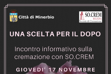 l'Amministrazione comunale ha organizzato un incontro informativo di sensibilizzazione sul tema della cremazione con SO.CREM Bologna presso la Biblioteca di Minerbio giovedì 17 novembre alle ore...